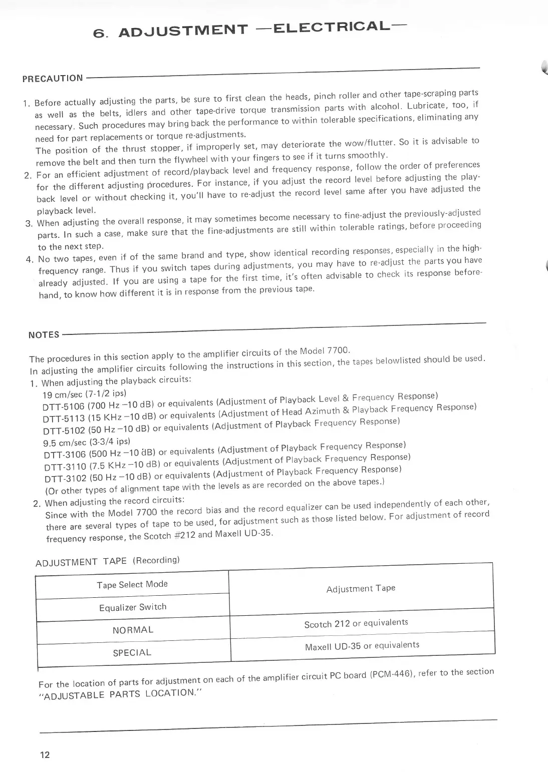 forthedifferentadjustingprocedures.Forinstance,ifyouadjusttherecordlevelbeforeadjustingtheplay-