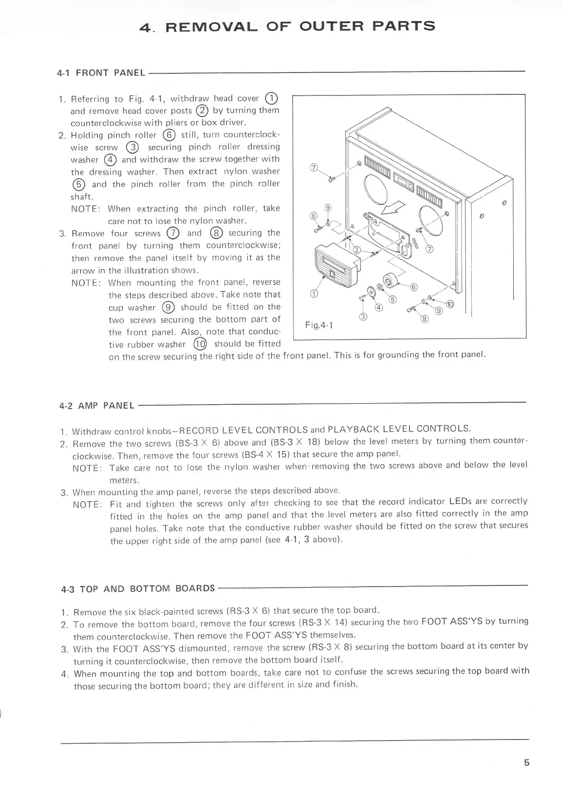 Dokorder 7700 - 4 Removalof Parts; Outer Parts; Front Panel; Amp Panel
