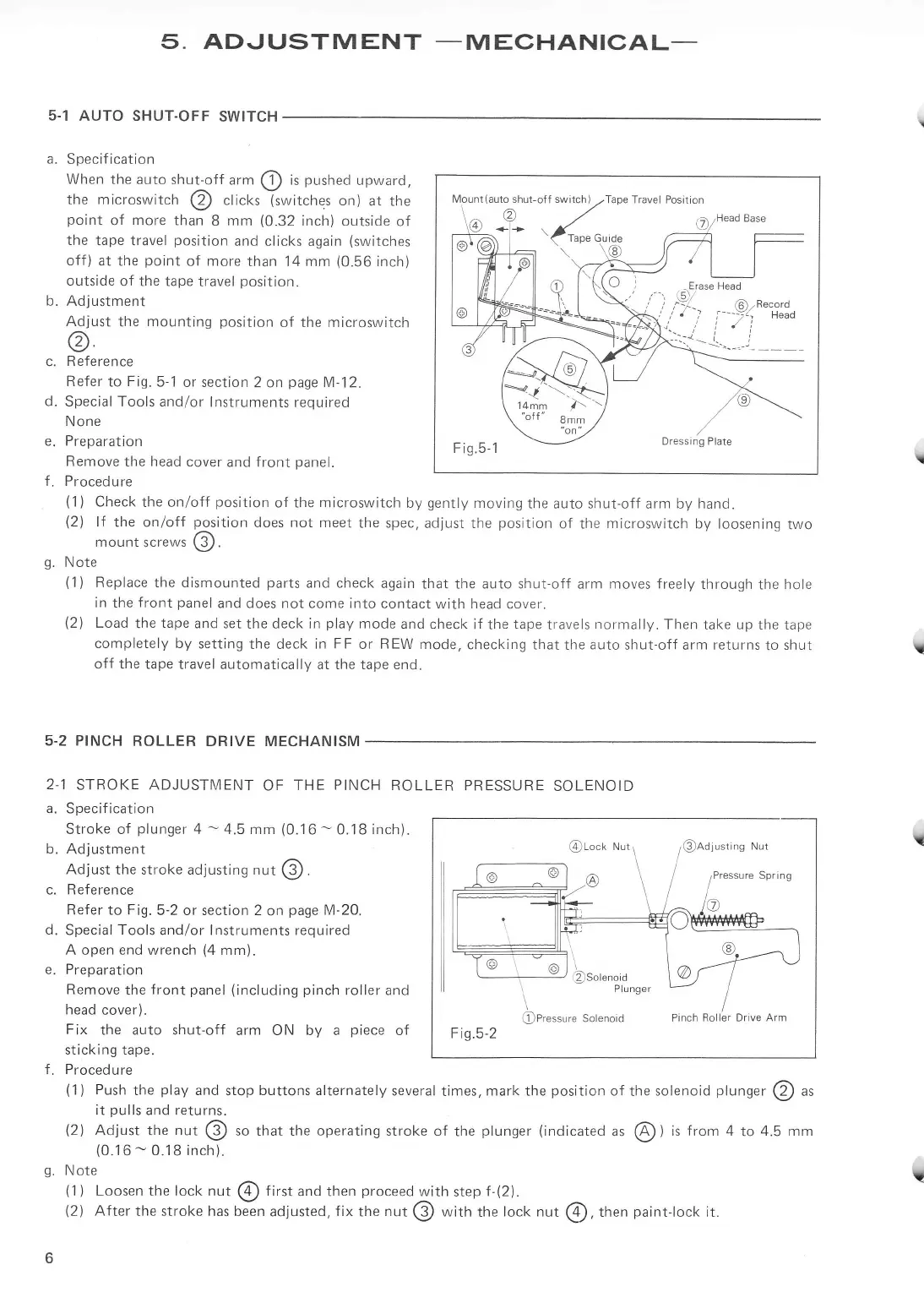 Dokorder 7700 - 5 Adjustment; Auto Shut-Off Switch
