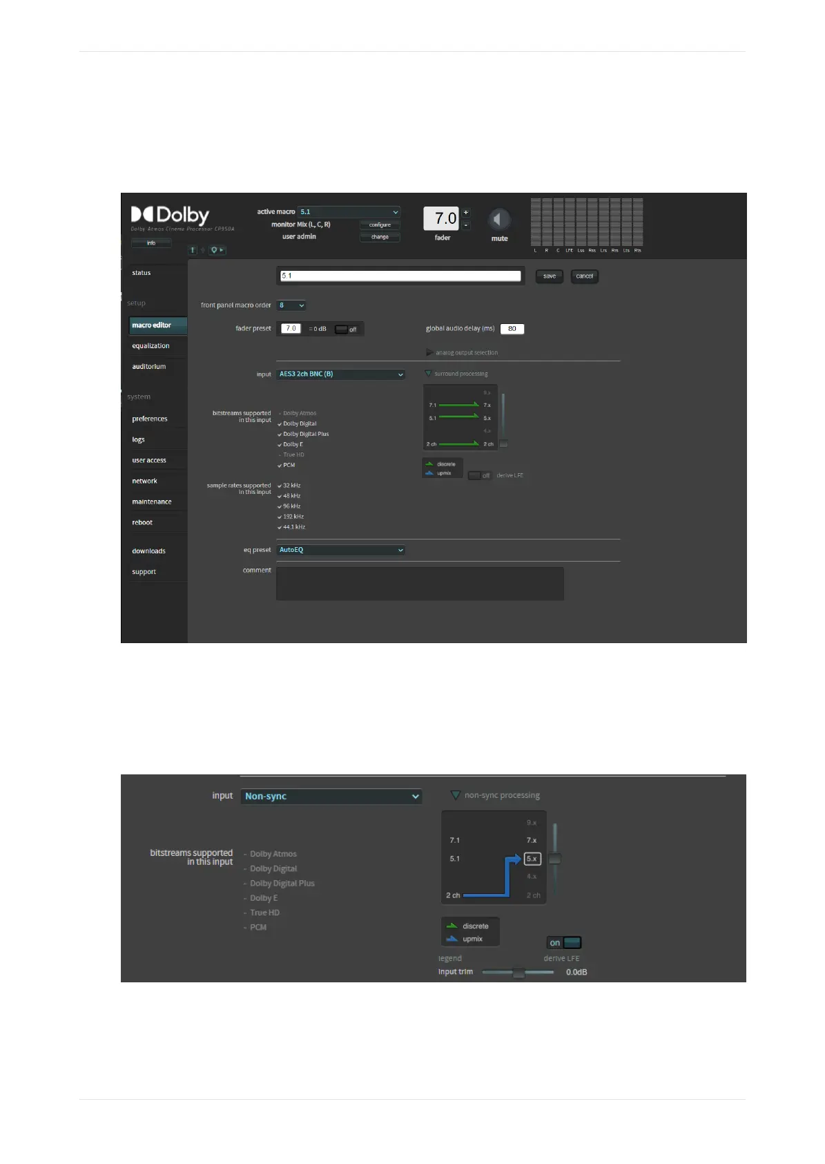 Figure 50: Configure macro surround processing and upmixing