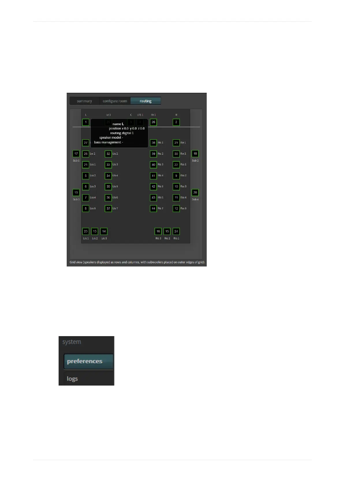 highlighted speaker). This information appears only if bass management is applied in Dolby Atmos
