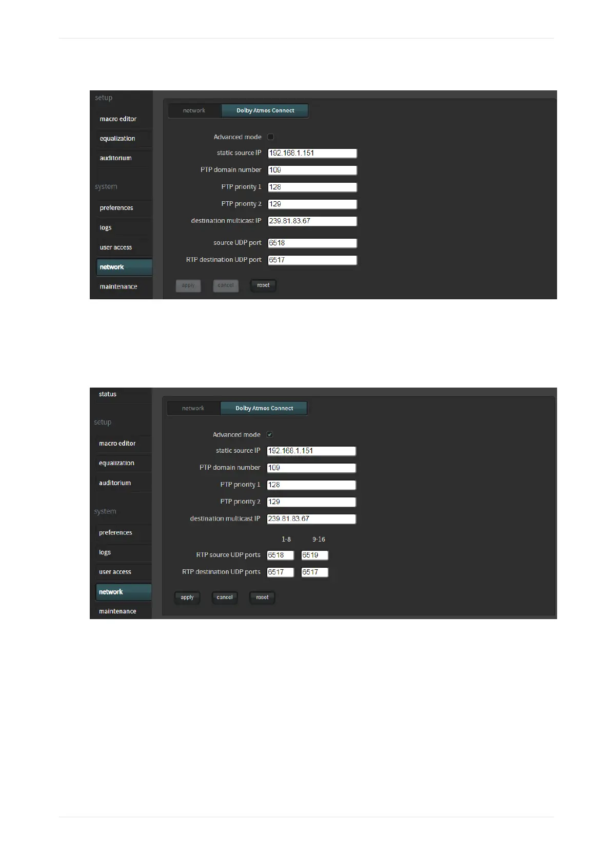 Figure 102: Setting up Dolby Atmos Connect advanced mode for CP950