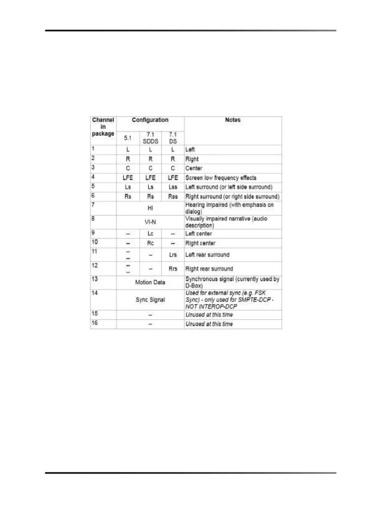 according to the ISDCF audio mapping recommendations, which currently include the