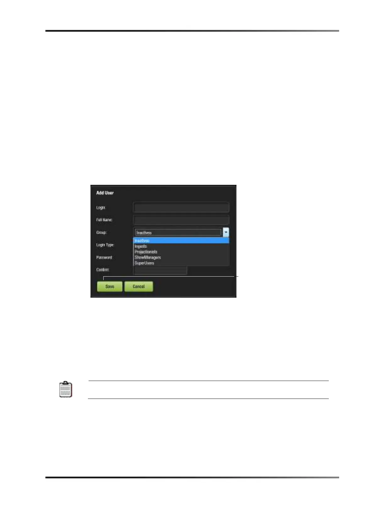Show Manager: In addition to projectionist's privileges, a Show Manager user is
