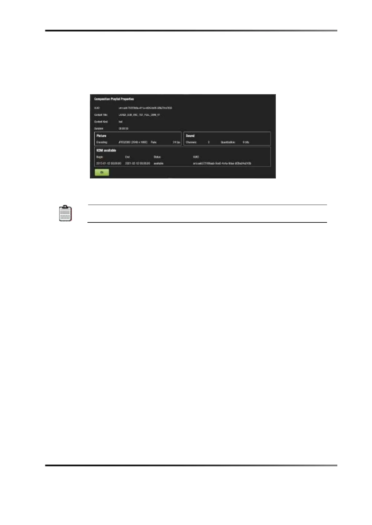 with the KDM information. The window indicates that the KDM is available and