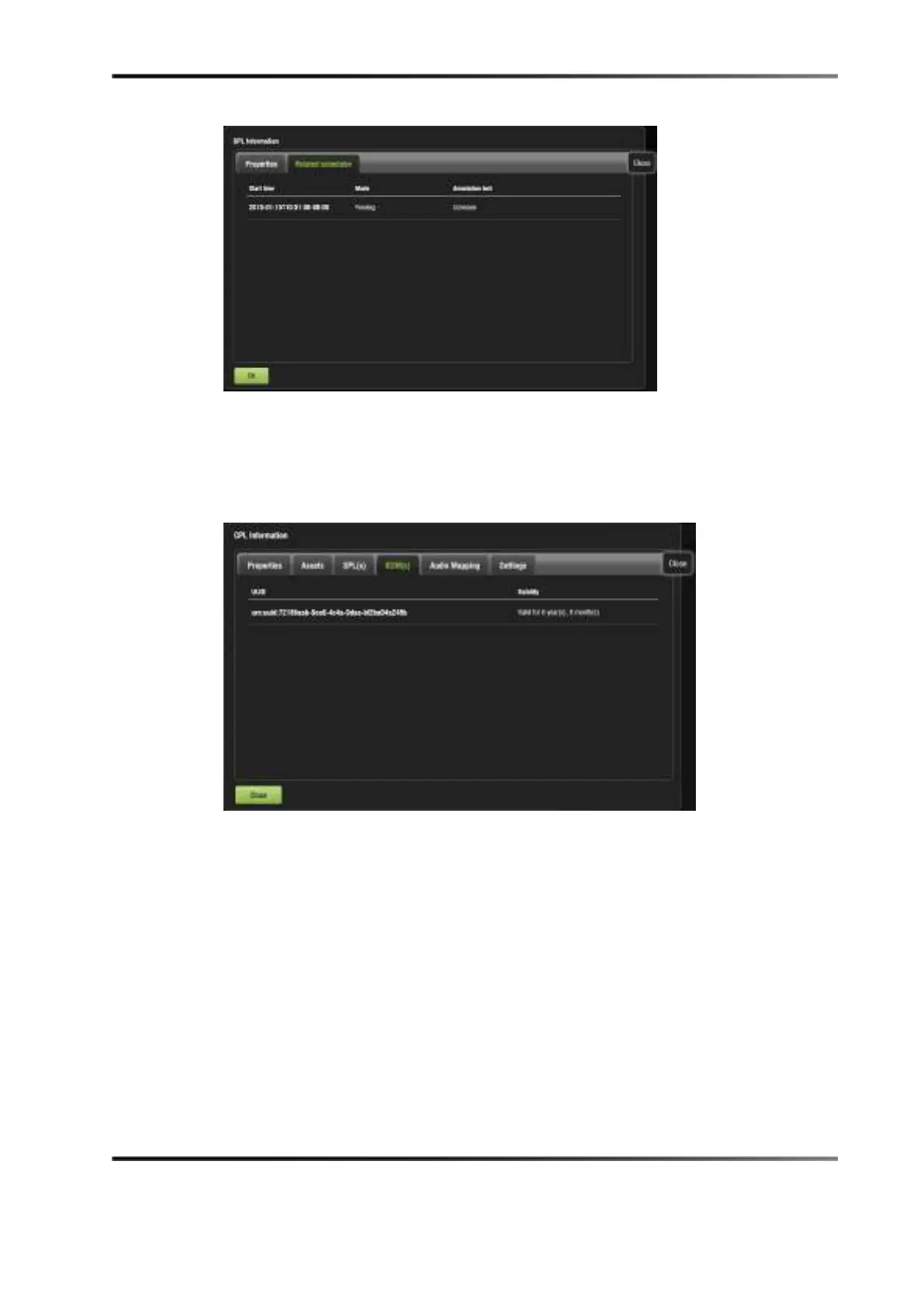 This tab will display the UUID and validity of each KDM for the concerned CPL.