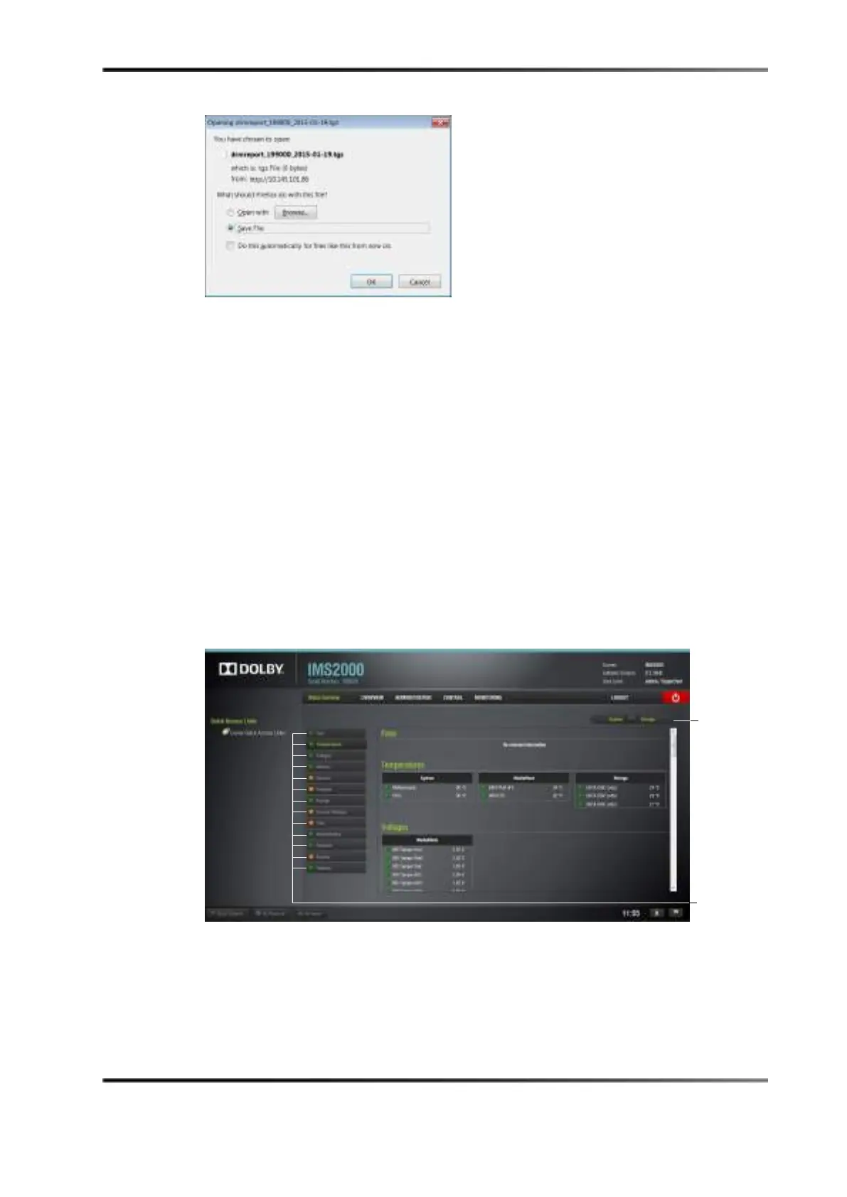 fans, temperature, voltage, memory, network, projector, storage, security manager, time,