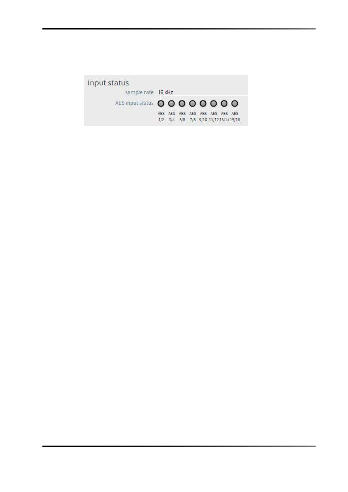 3. The row of green dots in the Input Status section signifies channels 1–8 and 9–16.