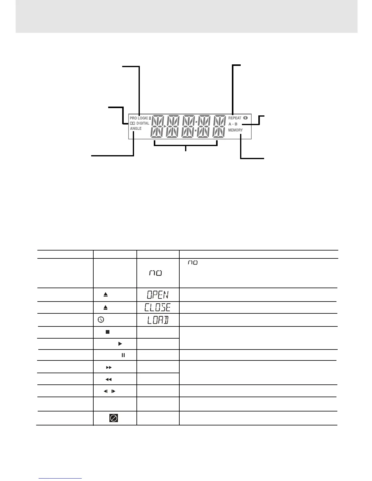 The DVD displays the information shown below on the TV screen and on the Unit's DVD display depending