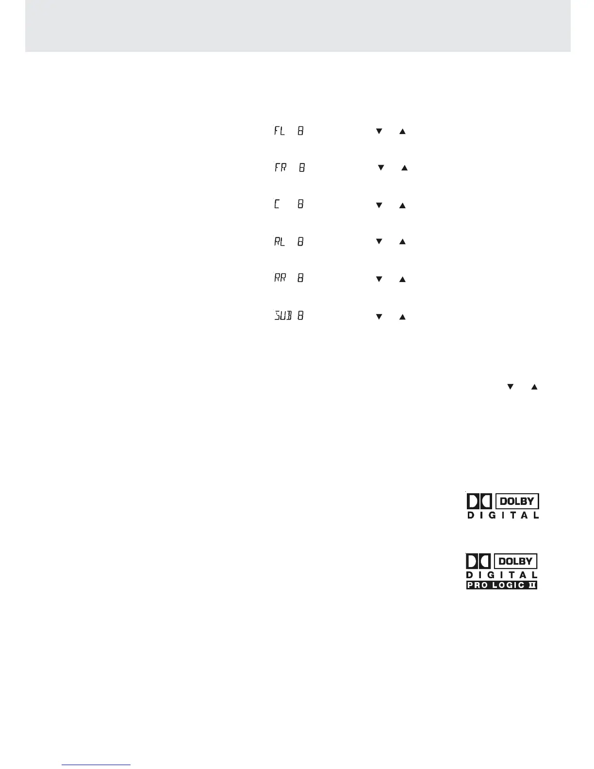 To adjust the surround sound balance while Dolby Digital and Dolby Pro Logic II