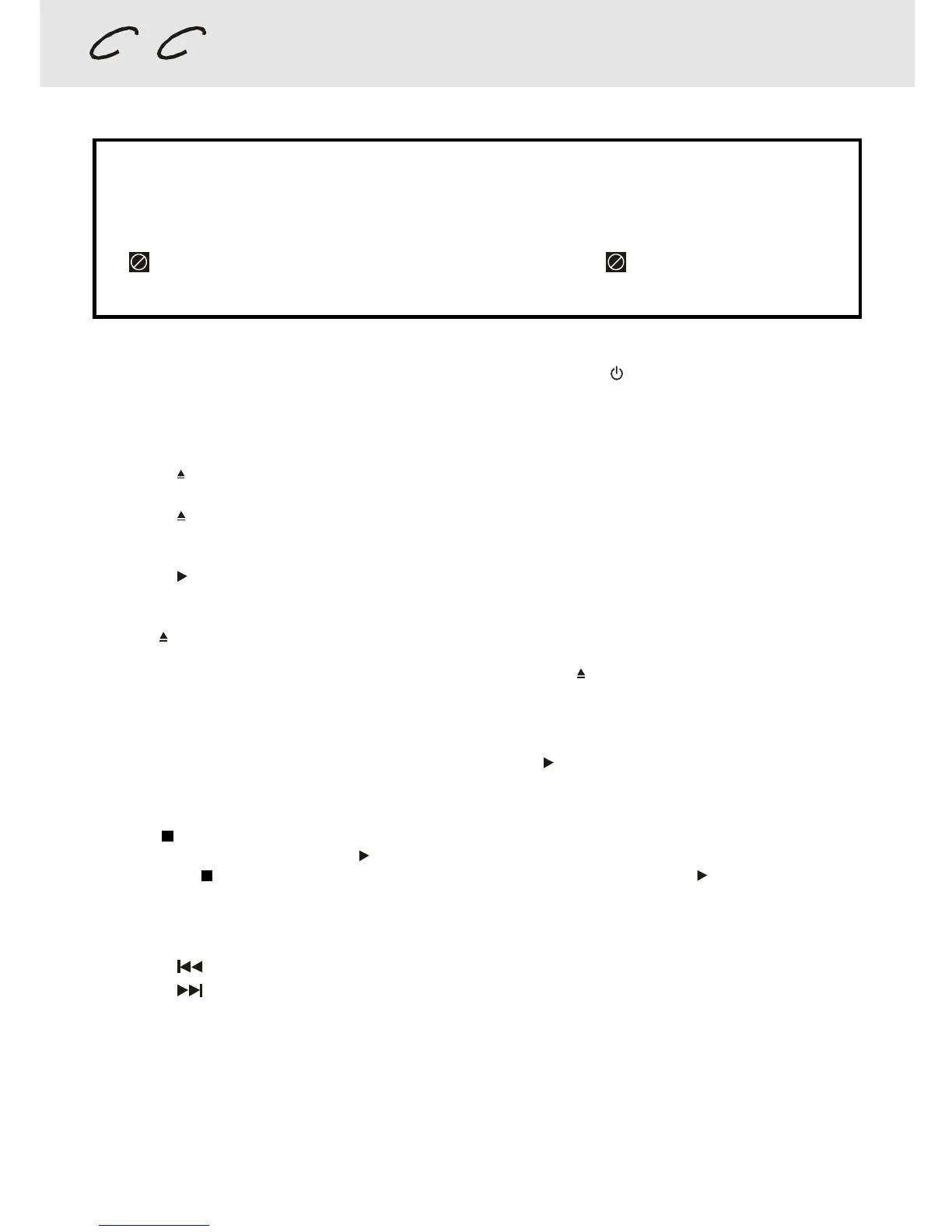OPEN / CLOSE button on the front panel to open or close the disc tray. Do not push the disc tray or you