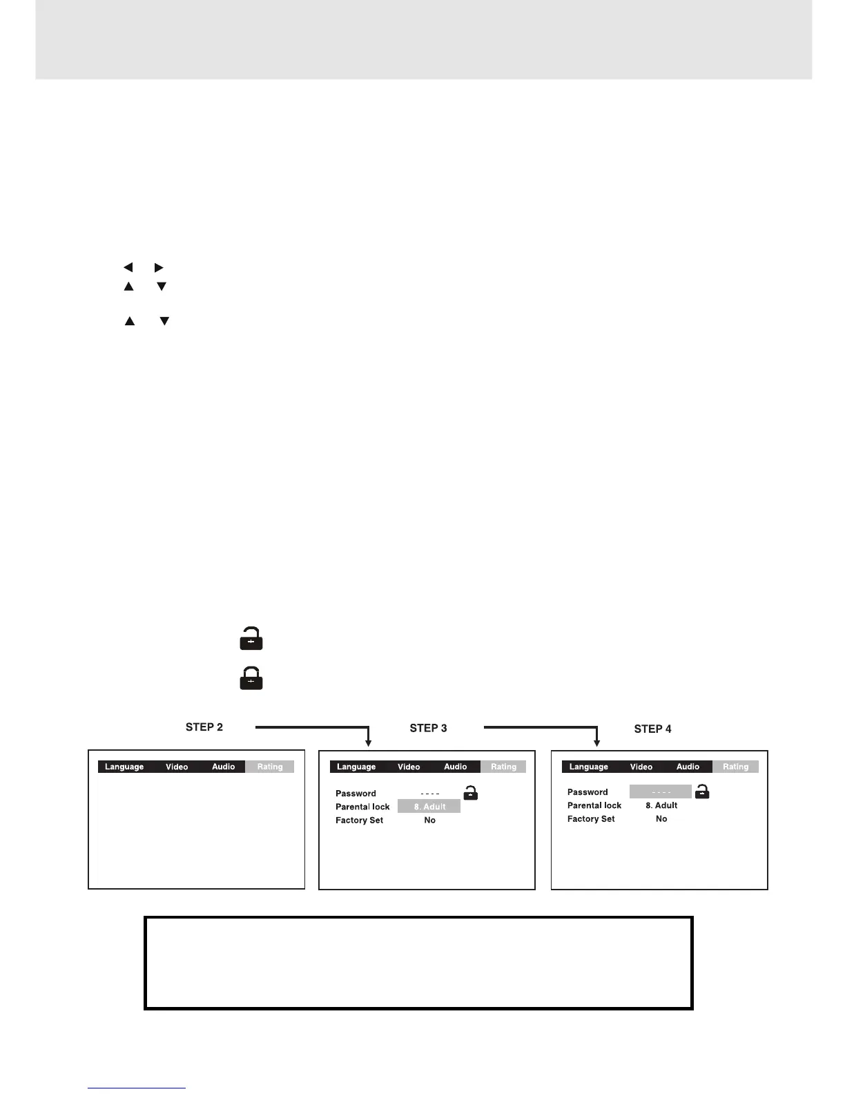 3.Use or button to select parental lock and then press the ENTER button repeatedly to set the parental lock