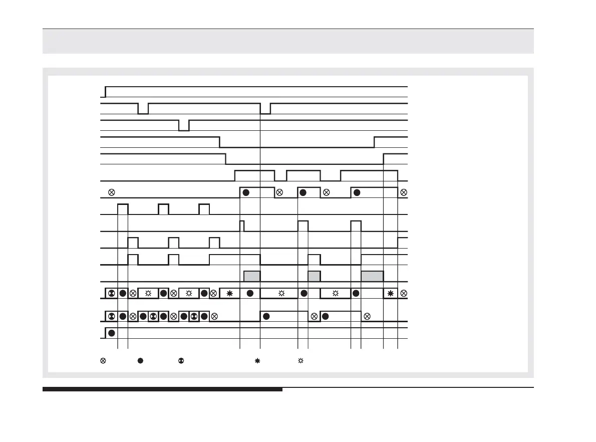 : off : continuous : slow symmetric flashing : fast flashing : flashing code