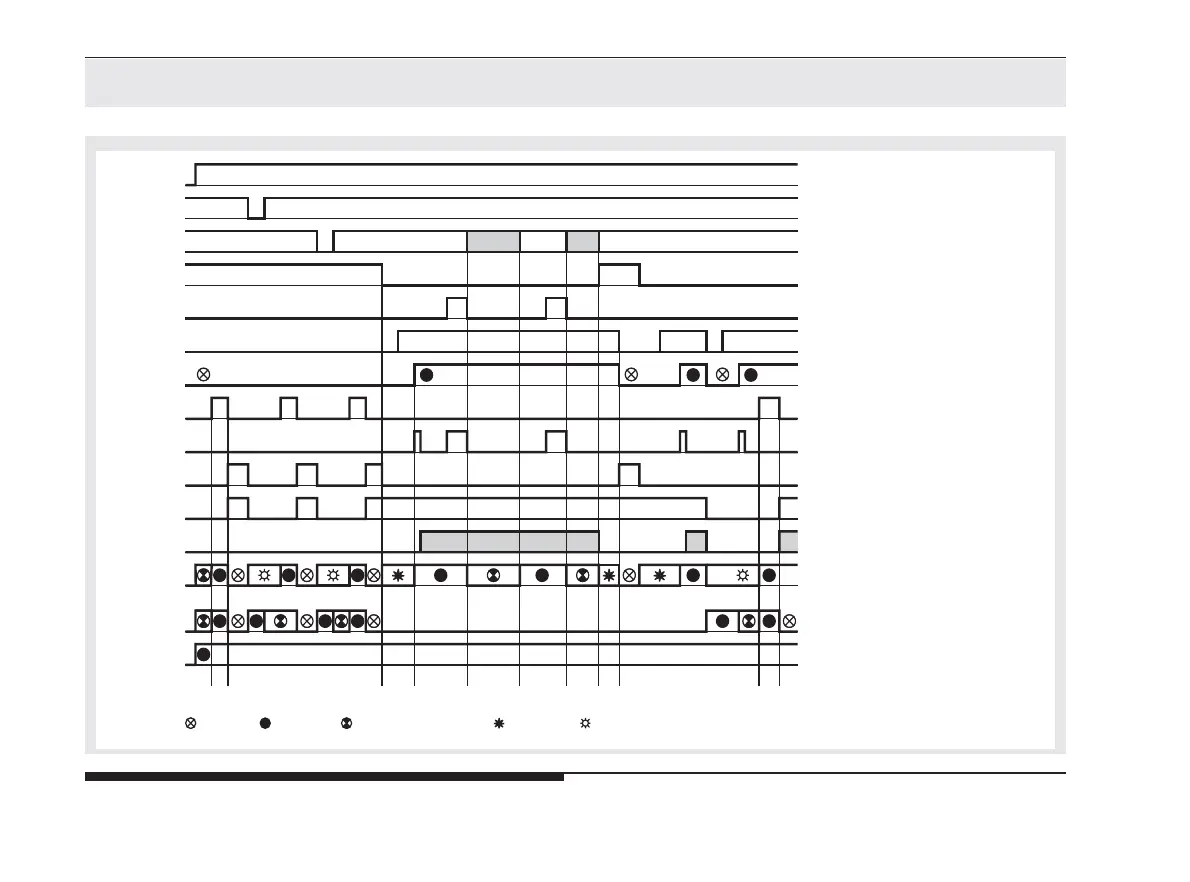 : off : continuous : slow symmetric flashing : fast flashing : flashing code