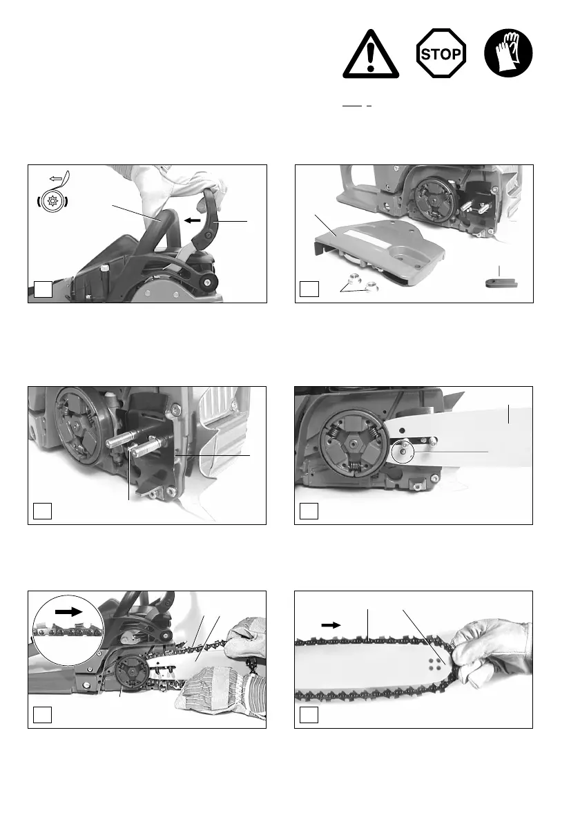 the sprocket guard (B/4). To do so, pull the hand guard (A/1)