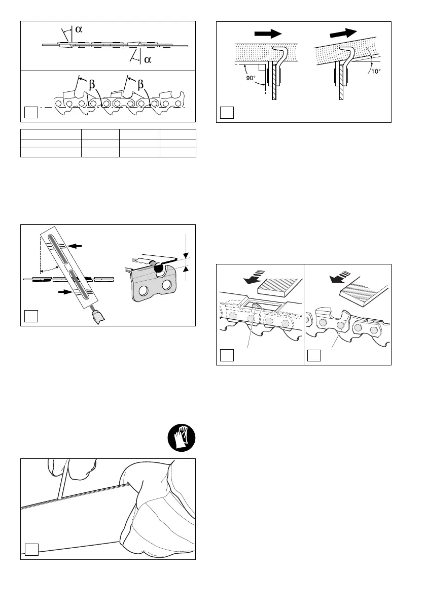 - 093 (3/8") and 099 (3/8") chain: File the Þ rst cutter half