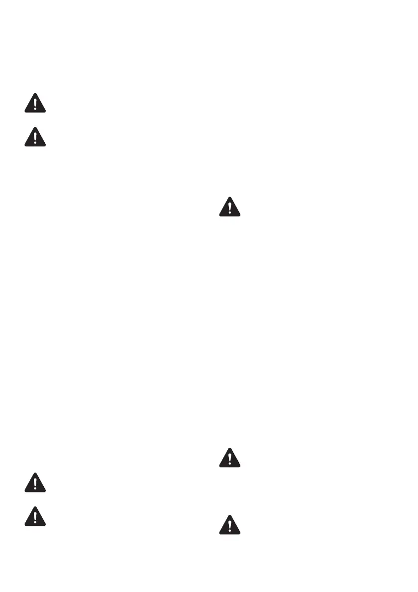 e) Nie wolno wsuwać dłoni ani stóp pod korpus kosiarki
