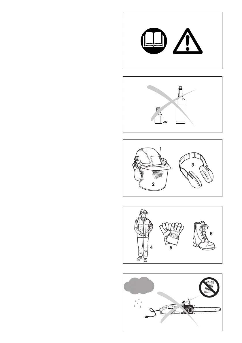 - Never use the electric chain saw after the consumption of alcohol