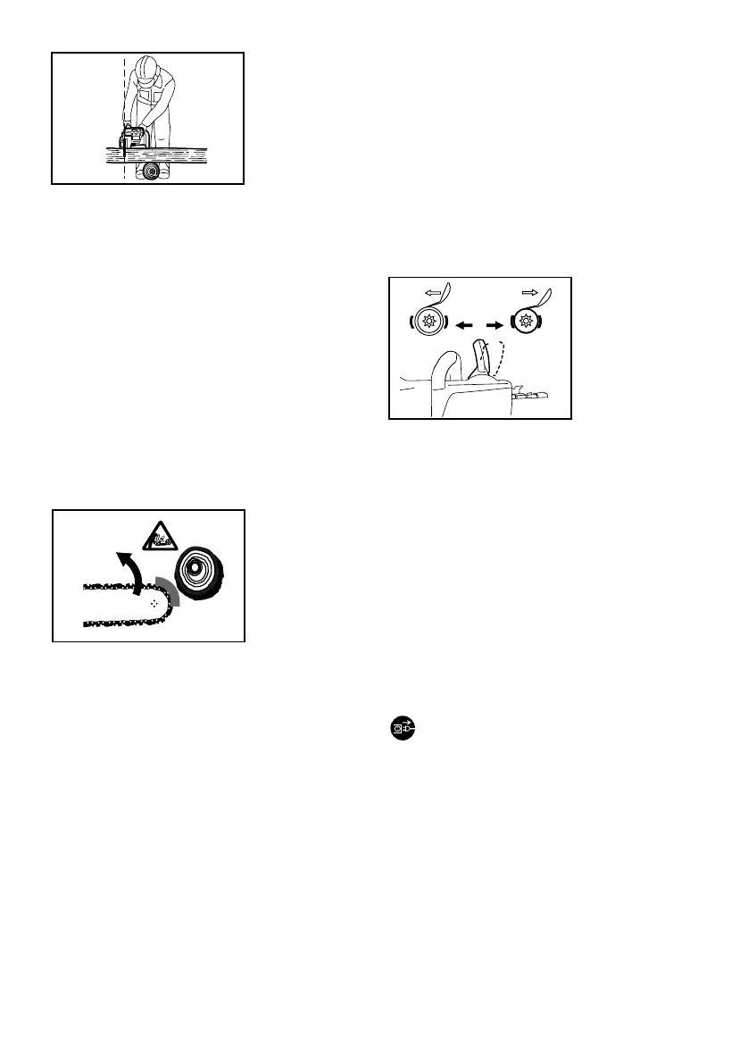 • Починай різати при працюючому ланцюгу.