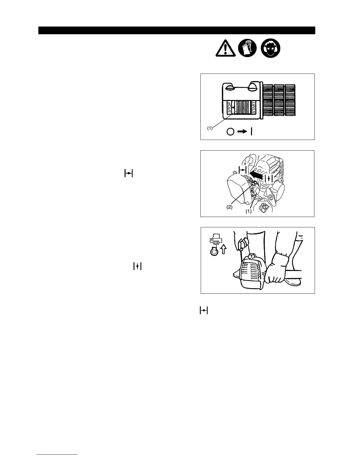 Note: − If the starter handle is pulled repeatedly when the choke button remains at “ ” position, the engine will not start easily due to excessive