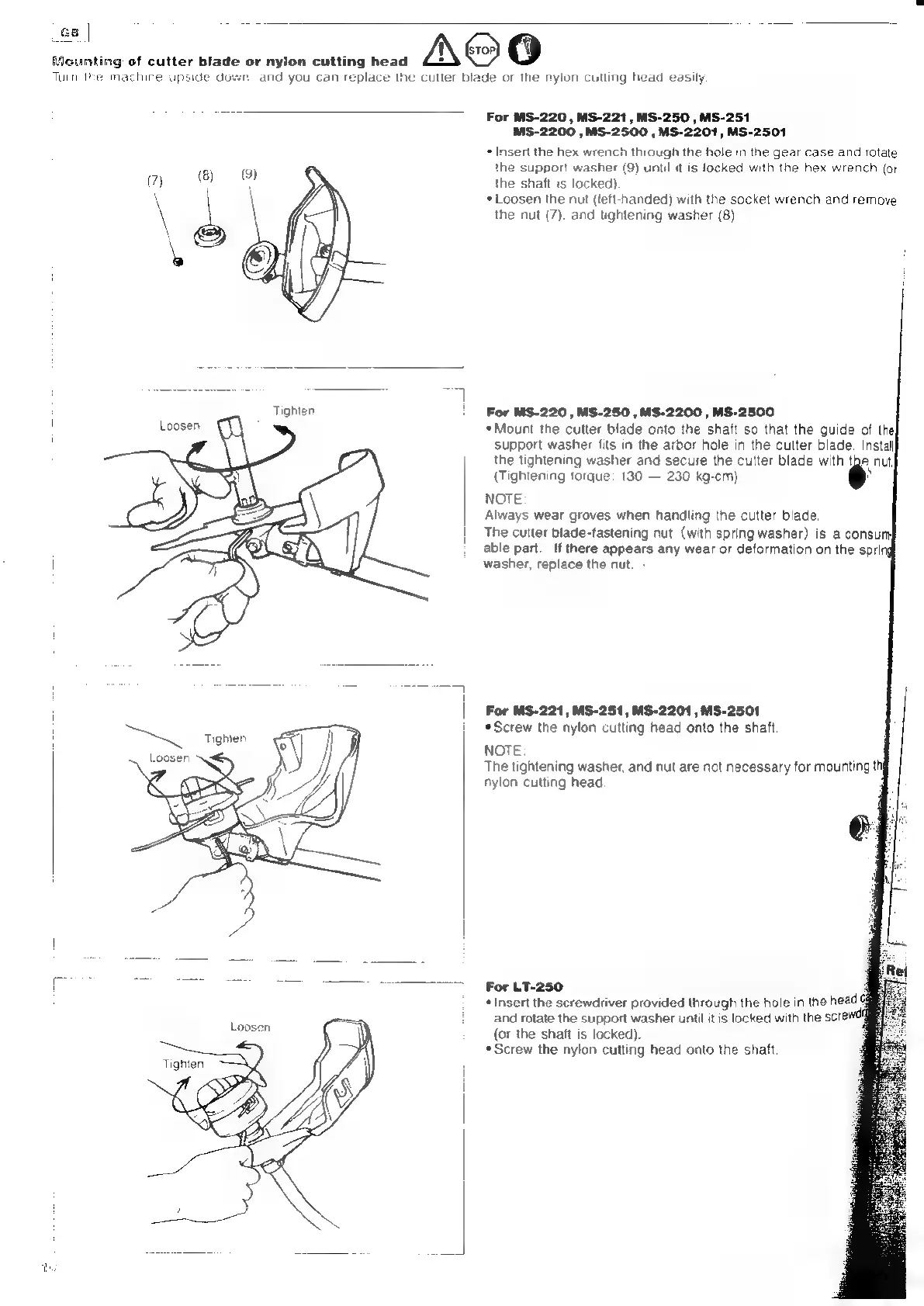 Dolmar LT-250 - Cutting Tool Mounting and Replacement; Mounting Cutting Tools on MS Models; Mounting Cutting Tools on LT-250