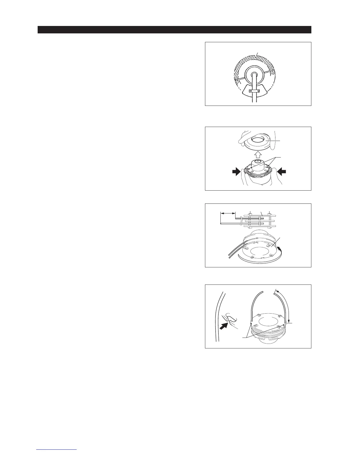 – Haken Sie die Mitte des Nylonfadens in die Kerbe in der Mitte der Spule