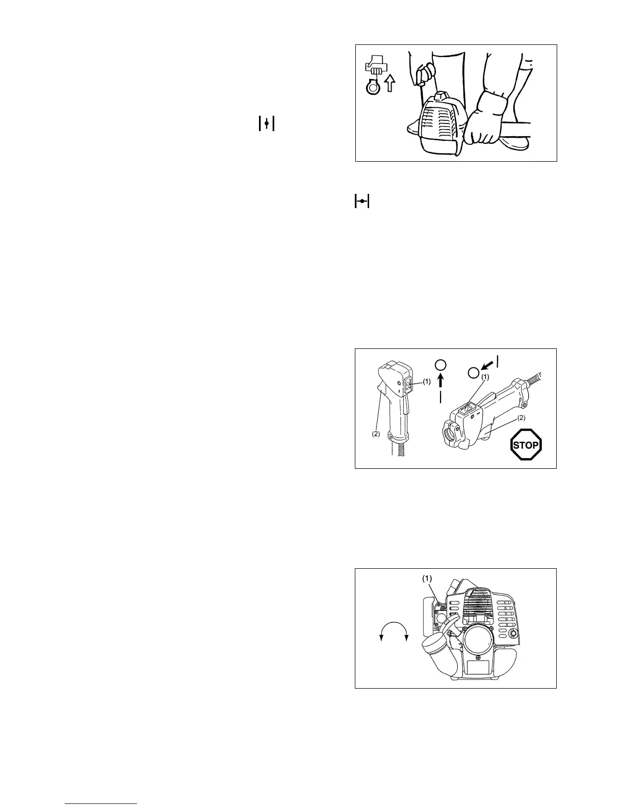 Note: − If the starter handle is pulled repeatedly when the choke button remains at “ ” position, the engine will not start easily due to