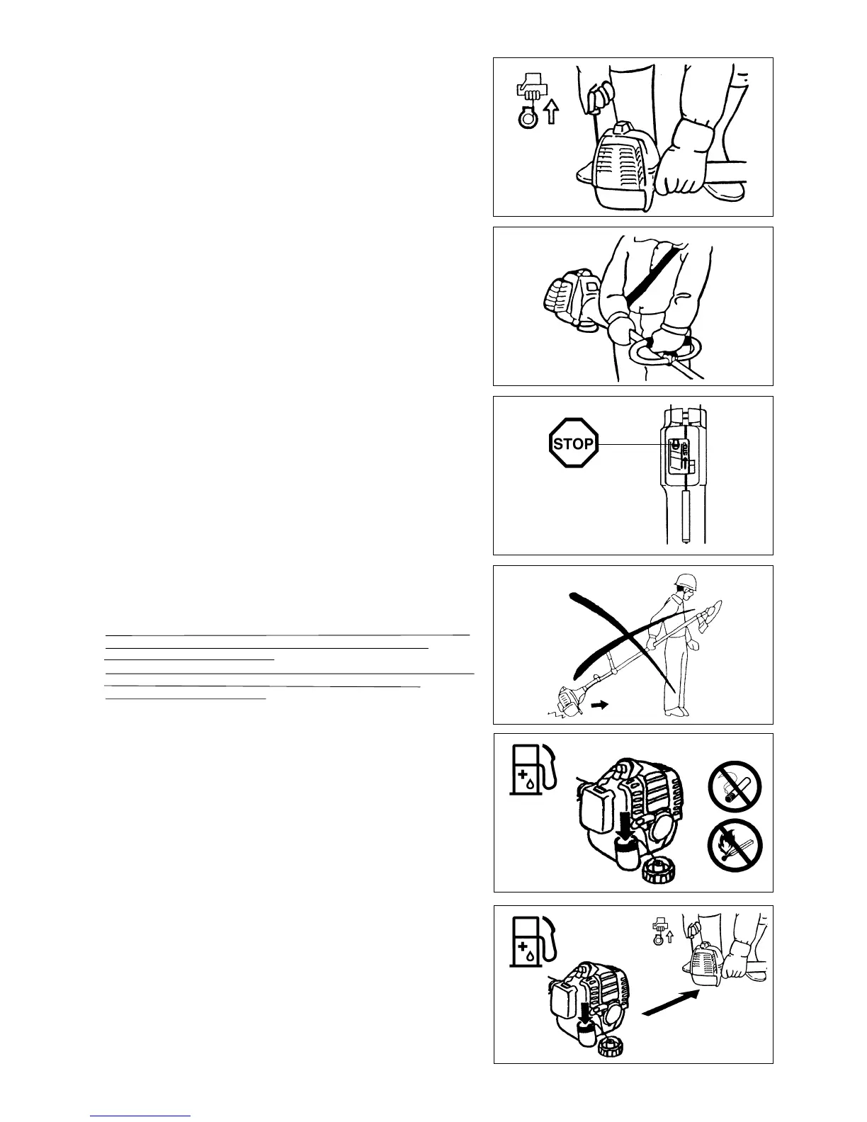 – Coupez le moteur lors des pauses et lorsque vous laissez la débroussailleuse