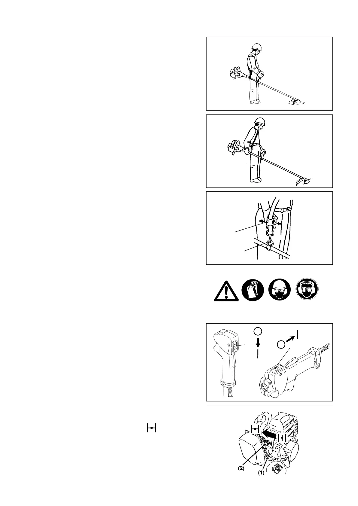 – Ajuster la longueur du harnais de sorte que la lame du coupe ou la tête de