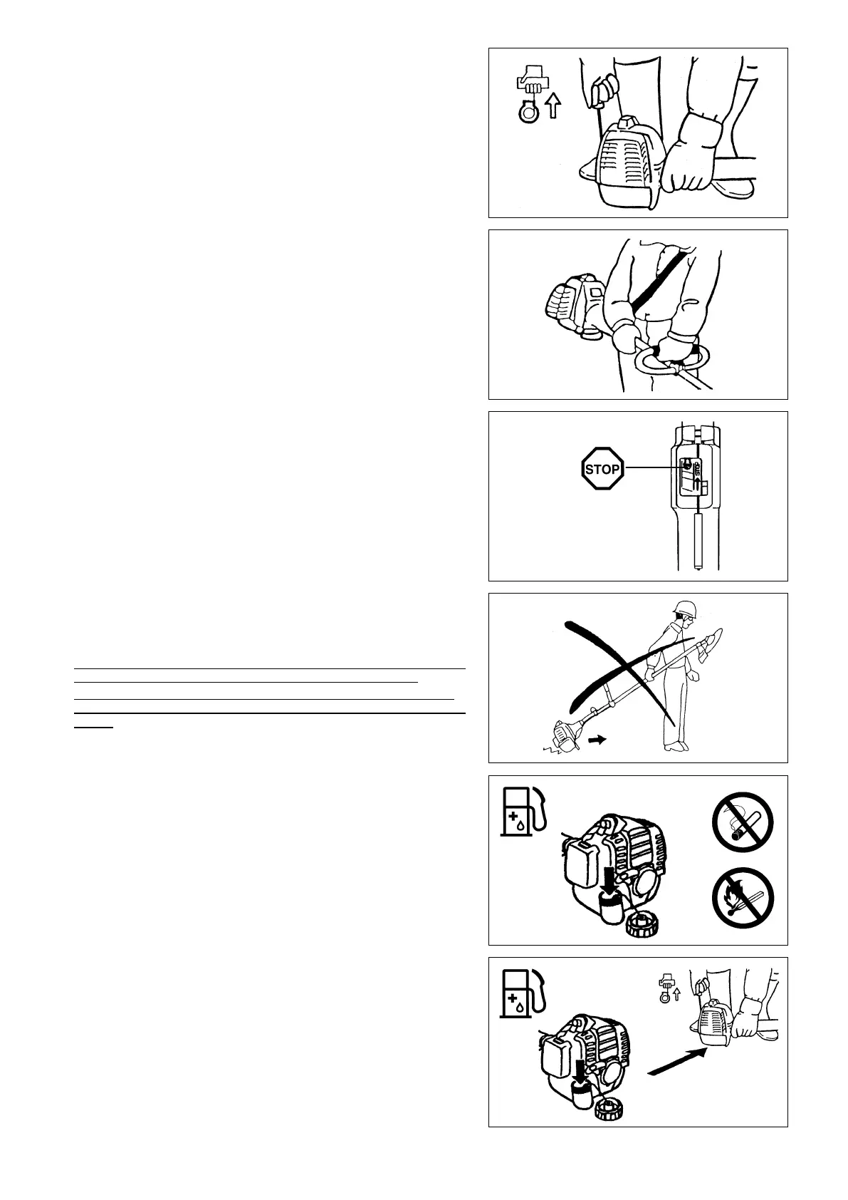– Never put the hot Brush cutter or Grass trimmer onto dry grass or onto any