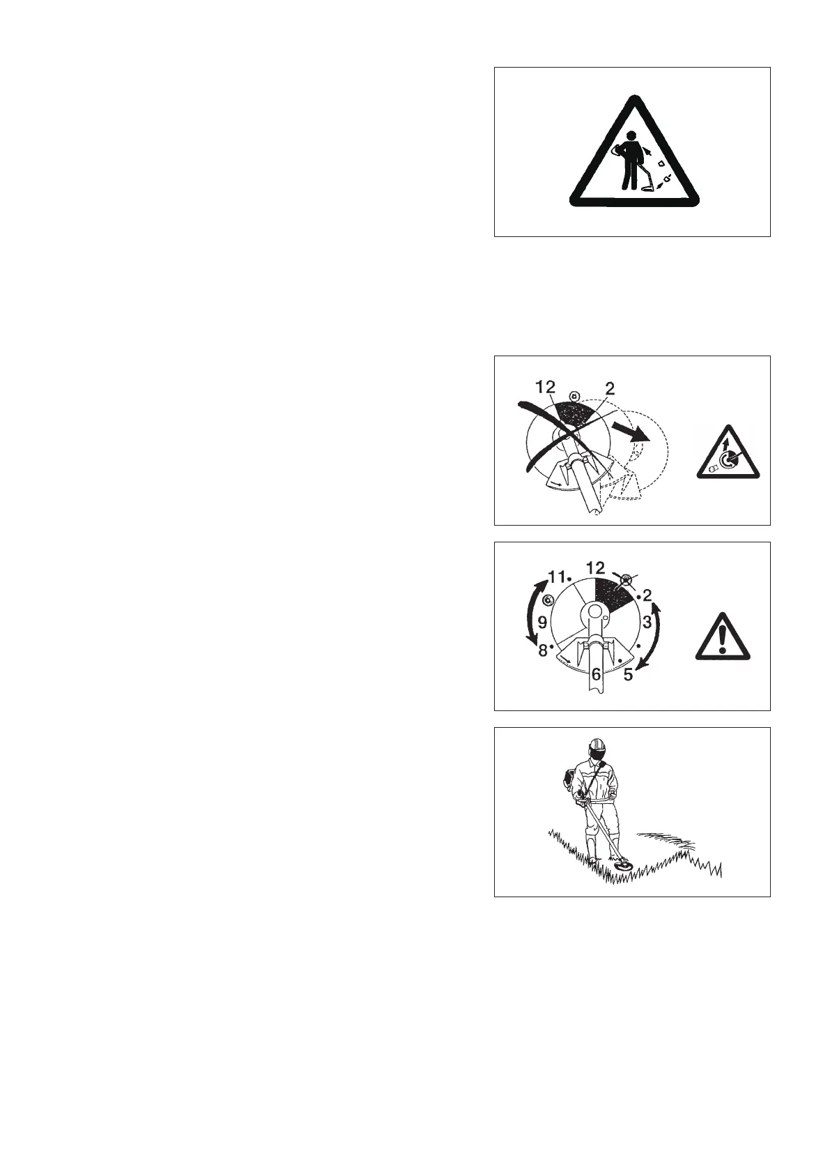– Nunca aplique la desbrozadora en un segmento entre las 12 y las 2 en