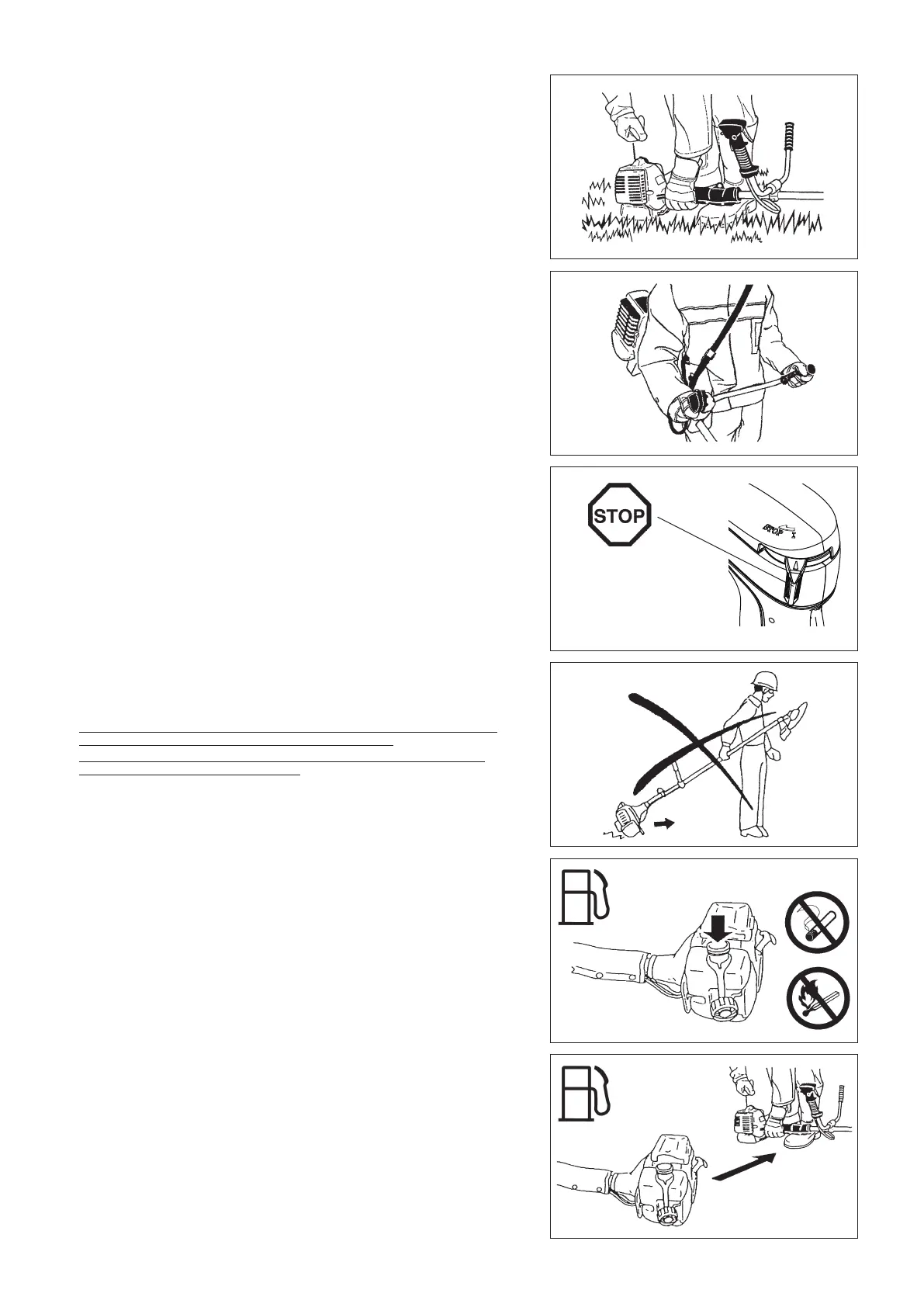 – Betreiben Sie die Motorsense nur mit angefügtem Schultergurt, der vor dem