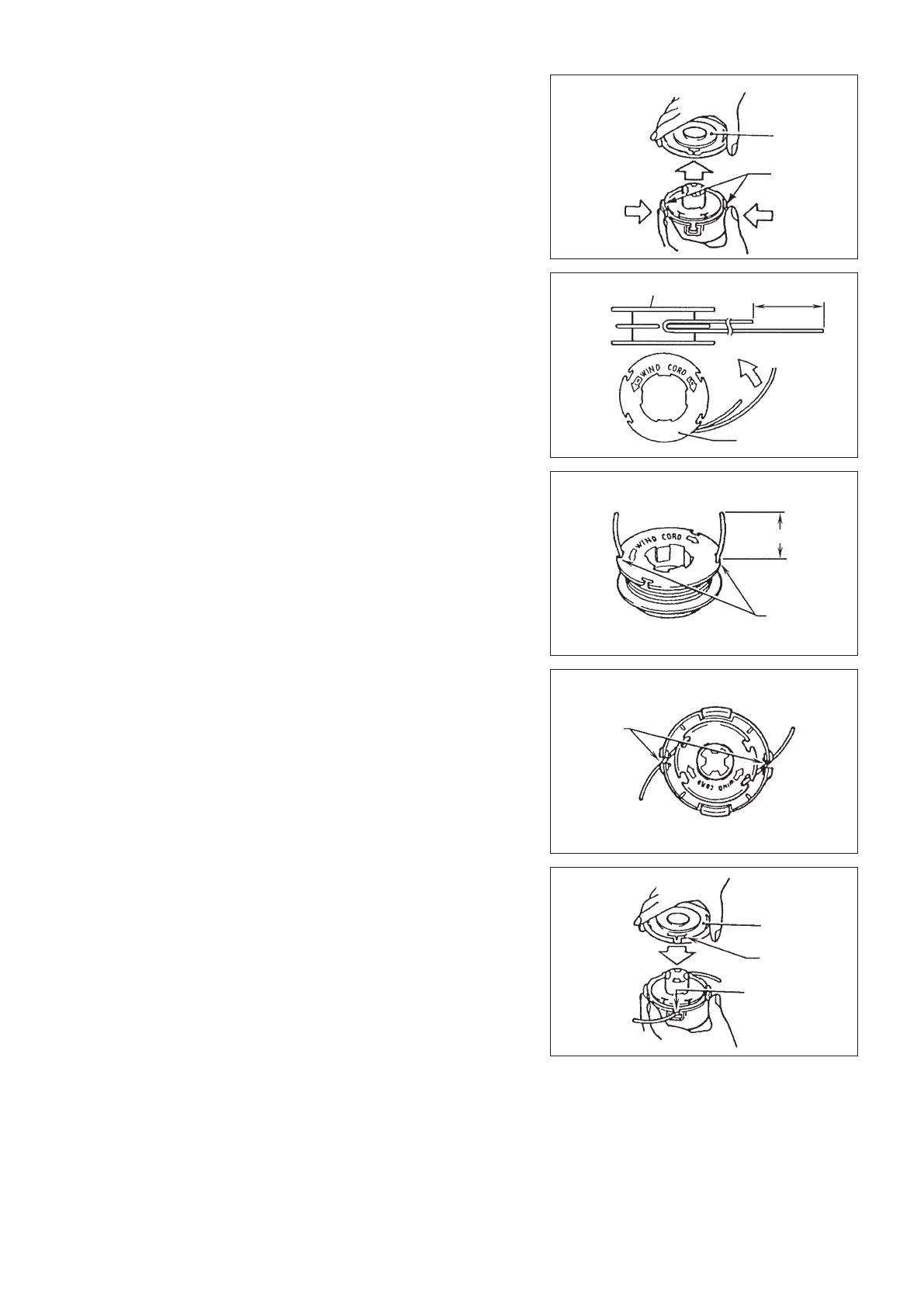 – Hook the center of new nylon cord into the notch in the center of the spool,