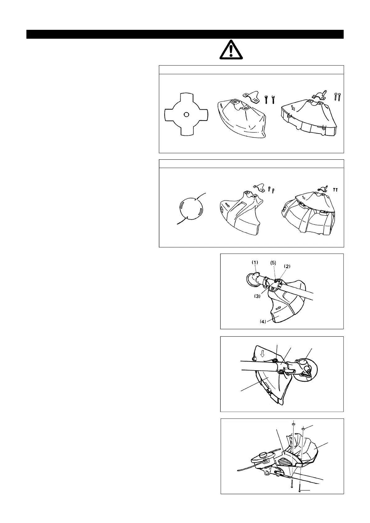 – In use of the metal blade, fasten the protector (4) to the clamp (3) with two