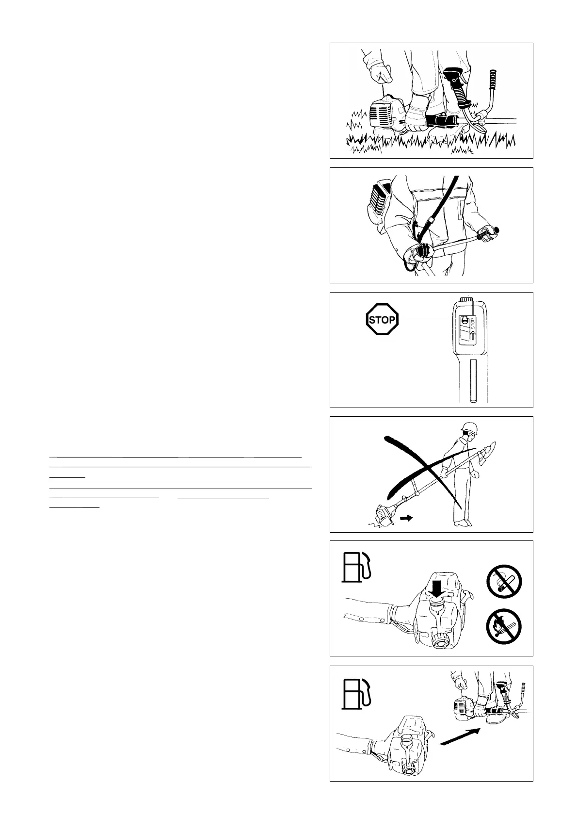 – Coupez le moteur lors des pauses et lorsque vous laissez la débroussailleuse