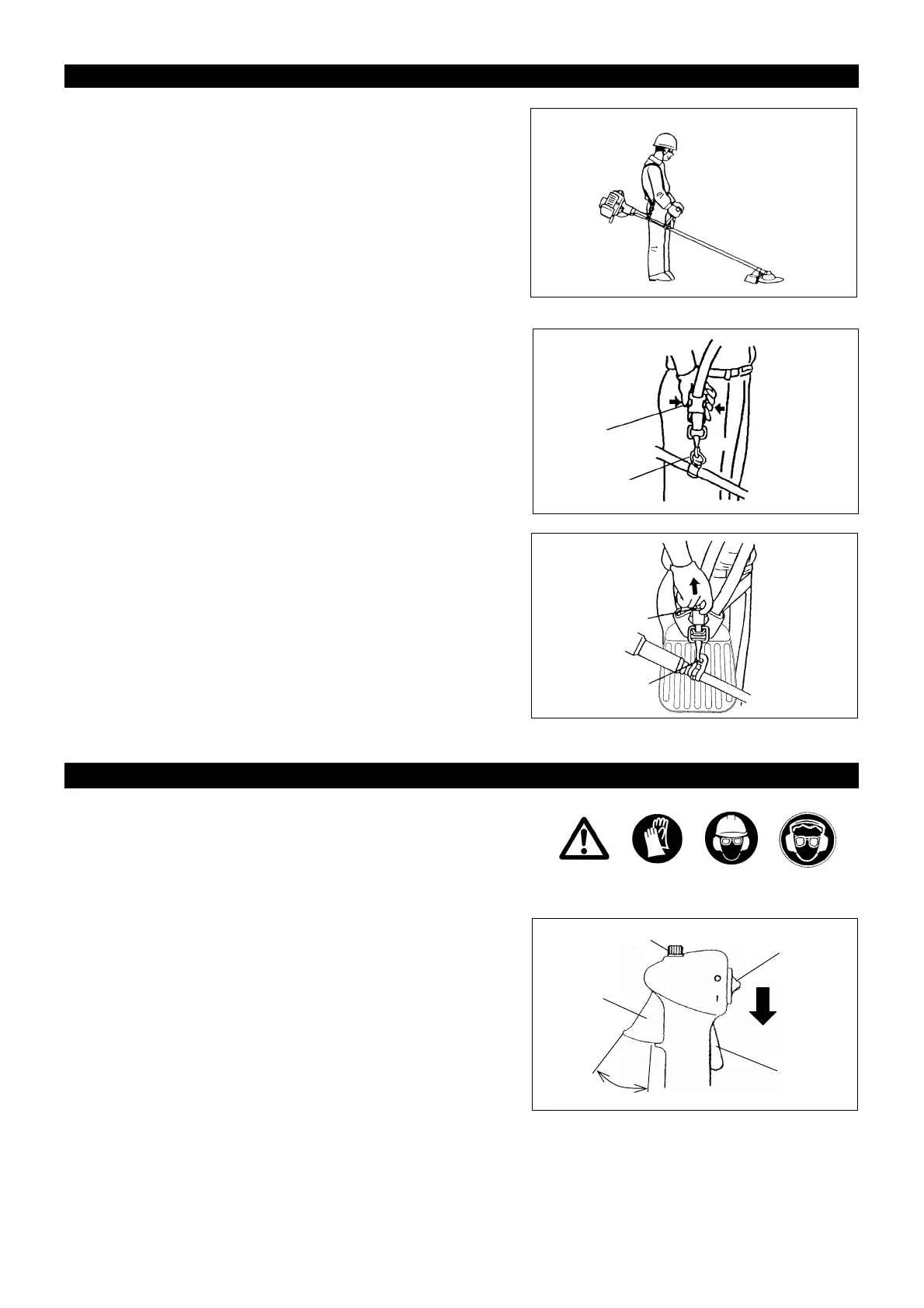 – Ajuster la longueur du harnais de sorte que la lame du coupe ou la tête de