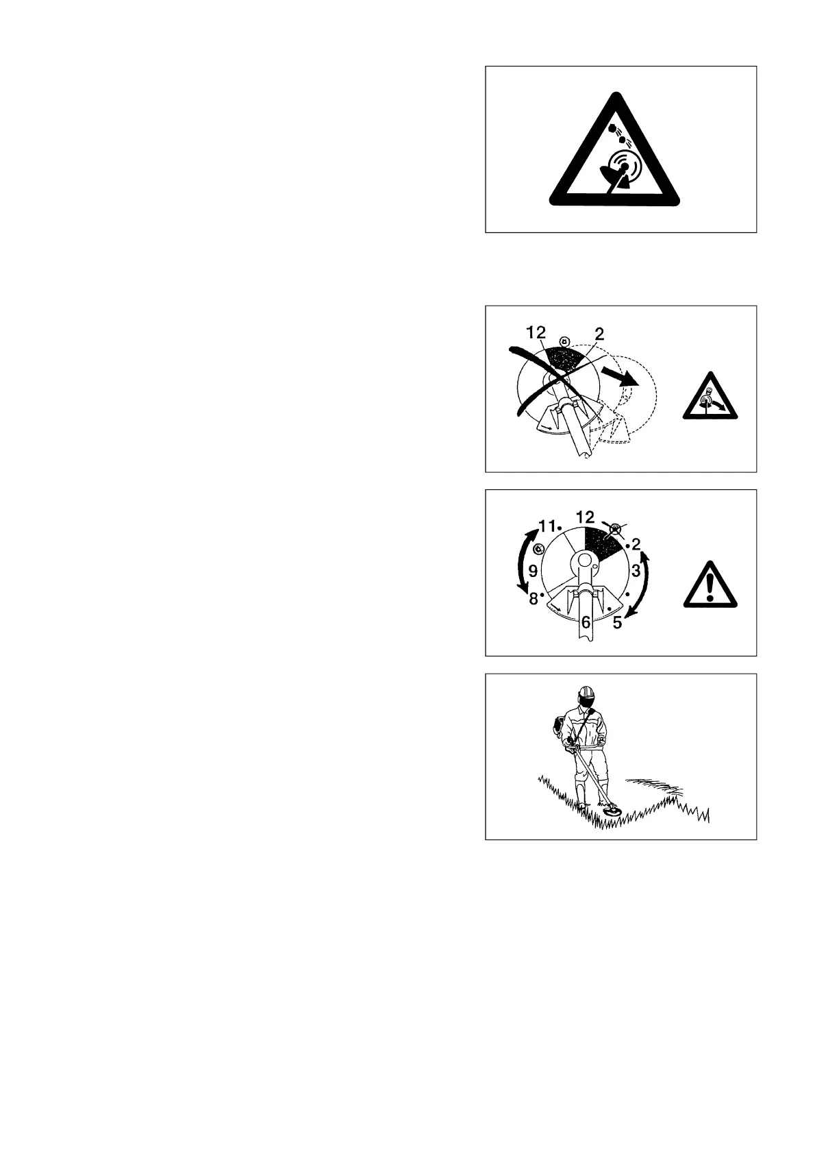 – Nunca utilizar la Desbrozadora dentro del segmento entre las 12 y 2 del reloj.