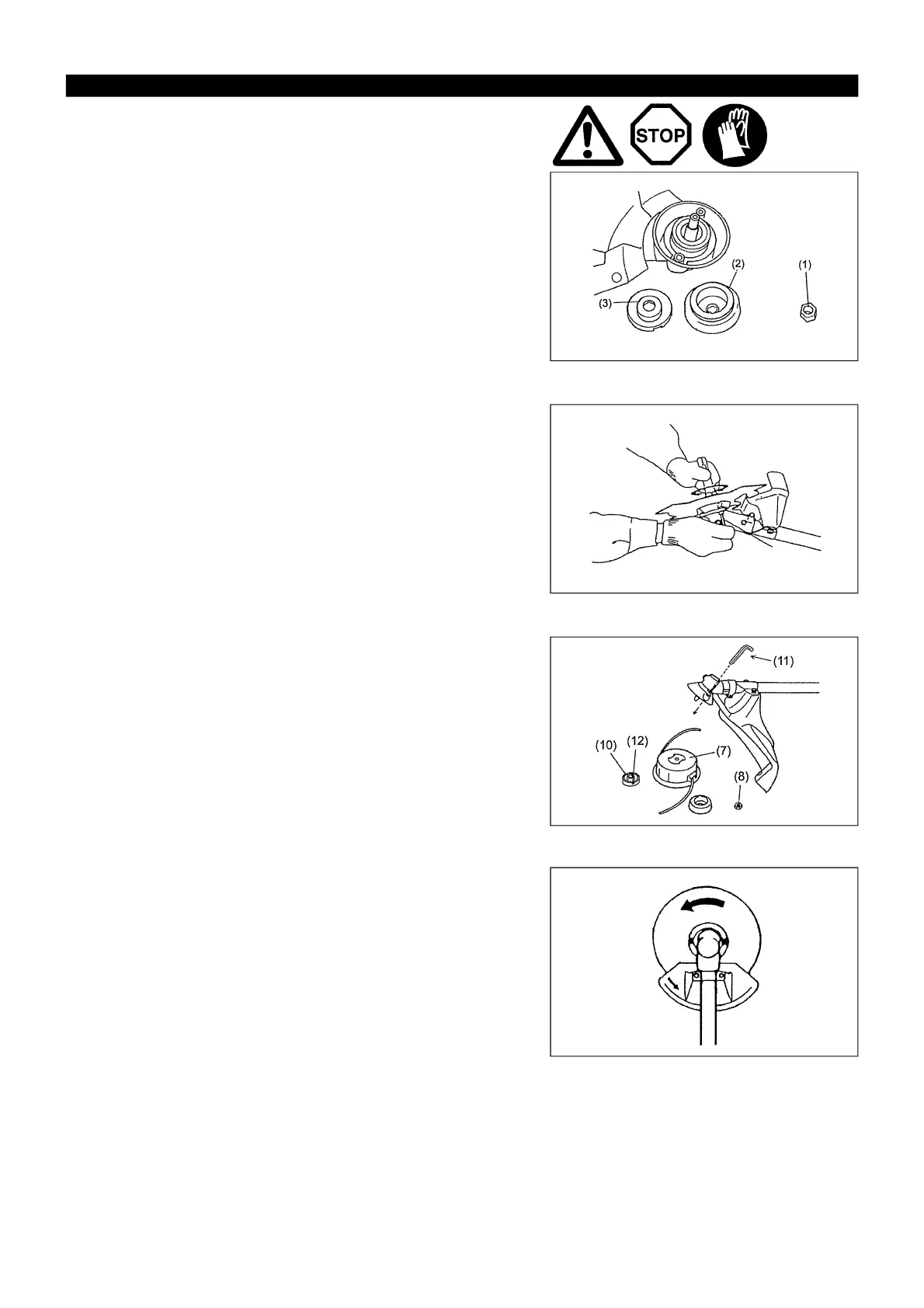 – Para instalar la cabeza de corte de nylon (7), cuite la tuerca de apriete (8).