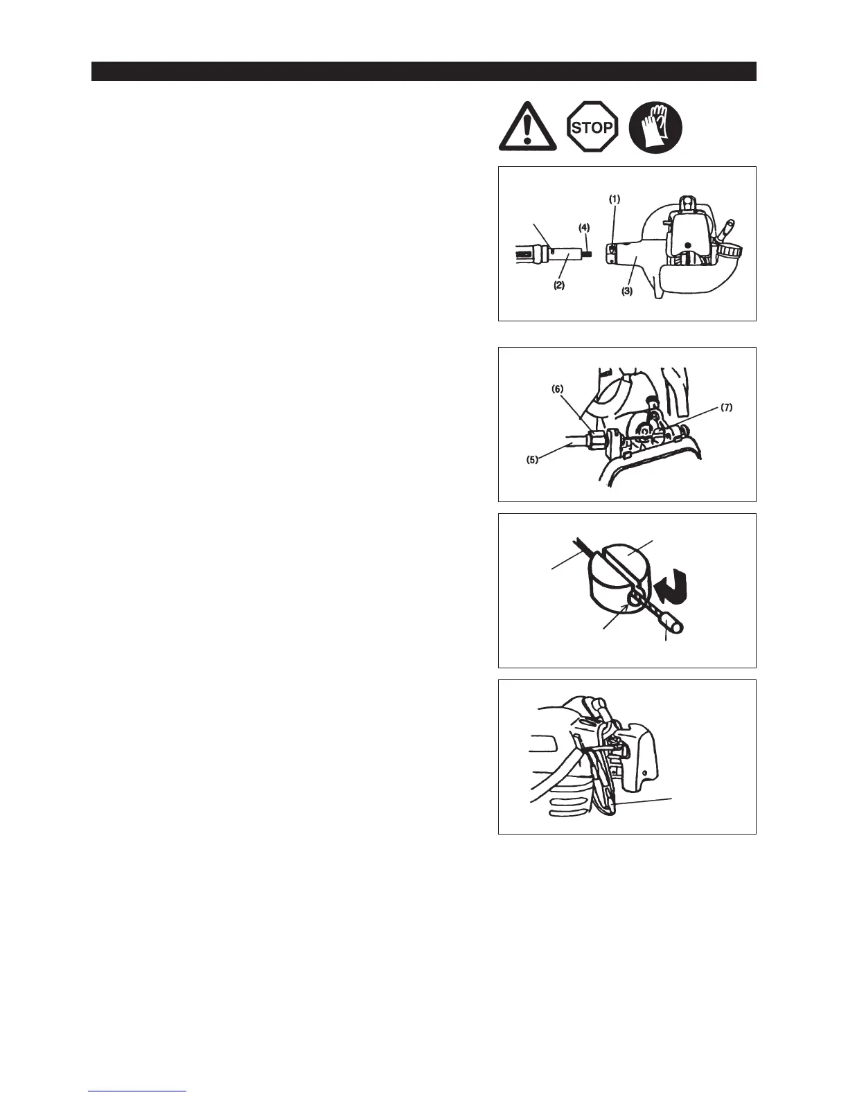 VIGYÁZAT:Mindigállítsaleamotortéshúzzaleagyújtókábeltagyújtógyertyáróla