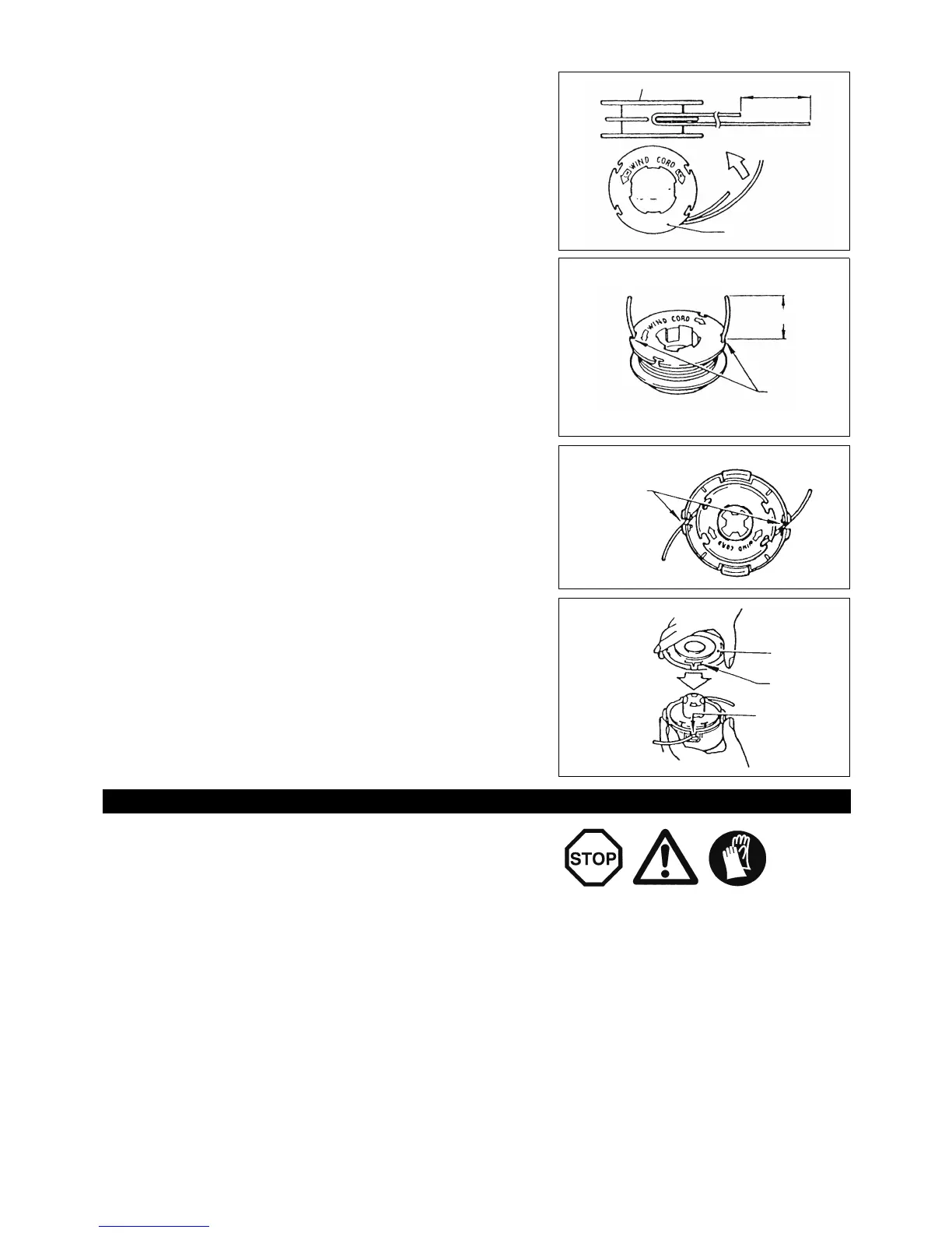 • Kontroller klingen og nylontrimmerhovedet for skader og sørg for, at den/det er ordentligt monteret.