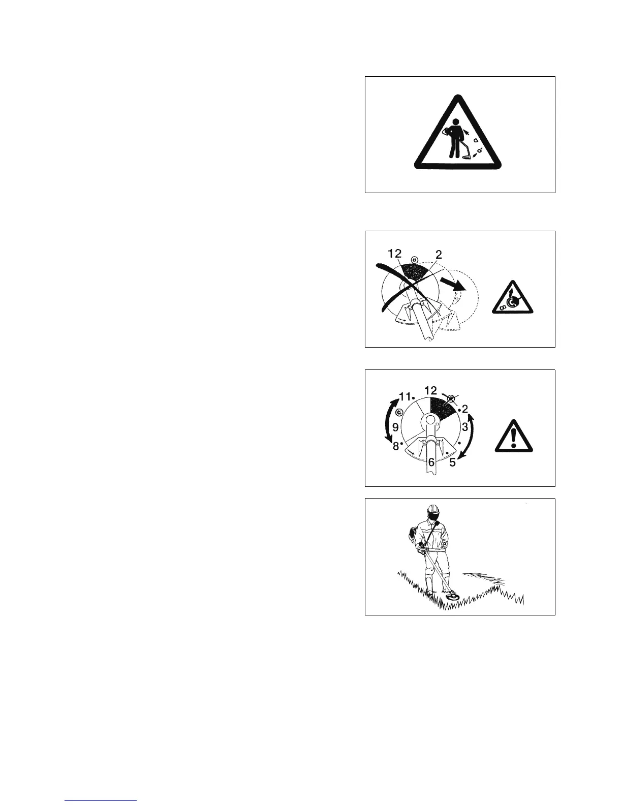 – Gebruik nooit de sectie tussen 12 en 2 uur voor het blad van de bosmaaier.