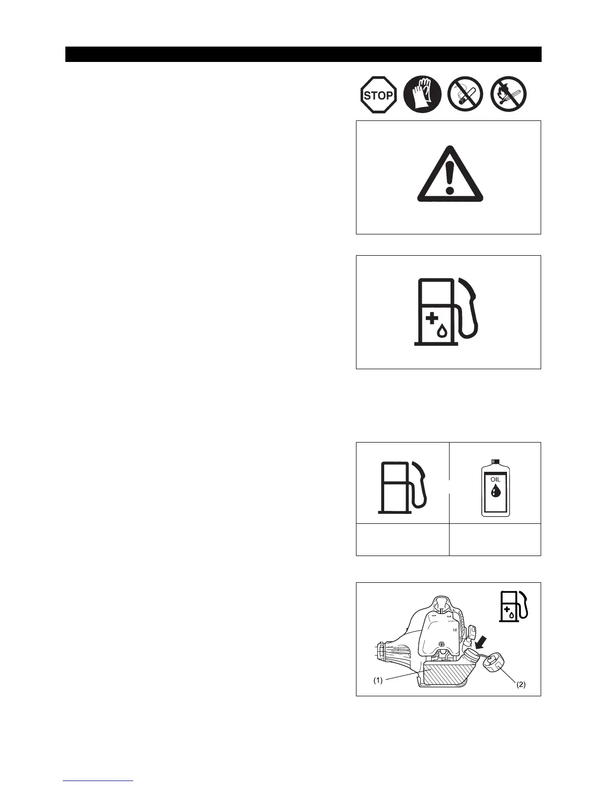depósito de la desbrozadora. Para garantizar un uso seguro, no añada