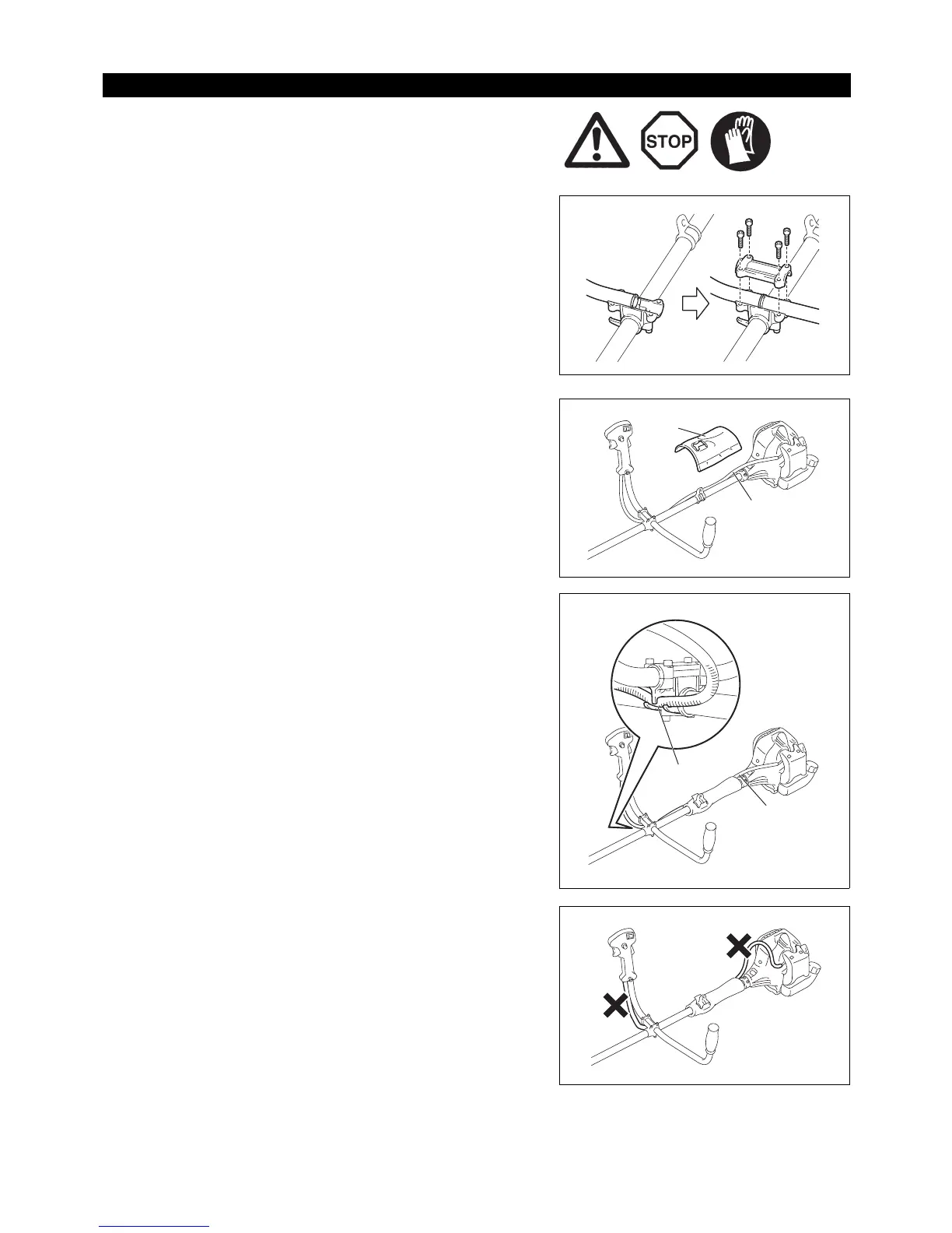 – Certifique-se de que o cabo do acelerador está posicionado conforme