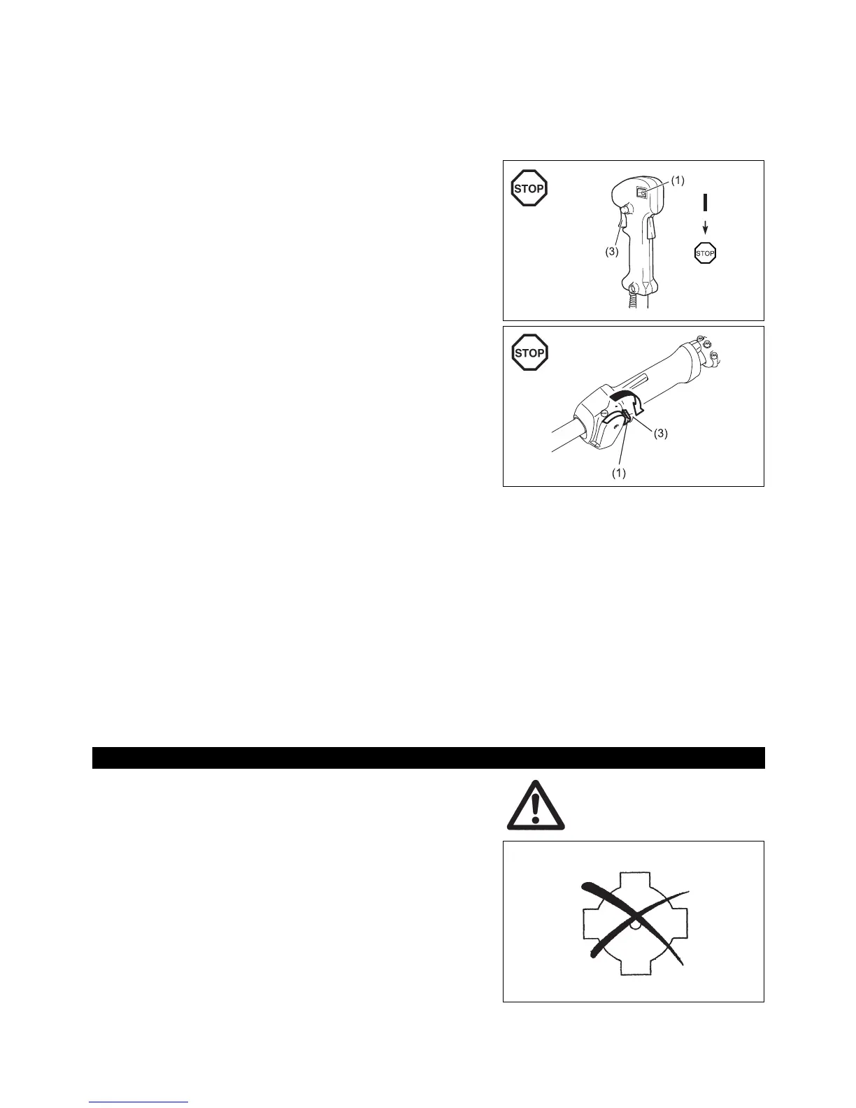 – Note que a cabeça de corte poderá não parar imediatamente e deixe sempre