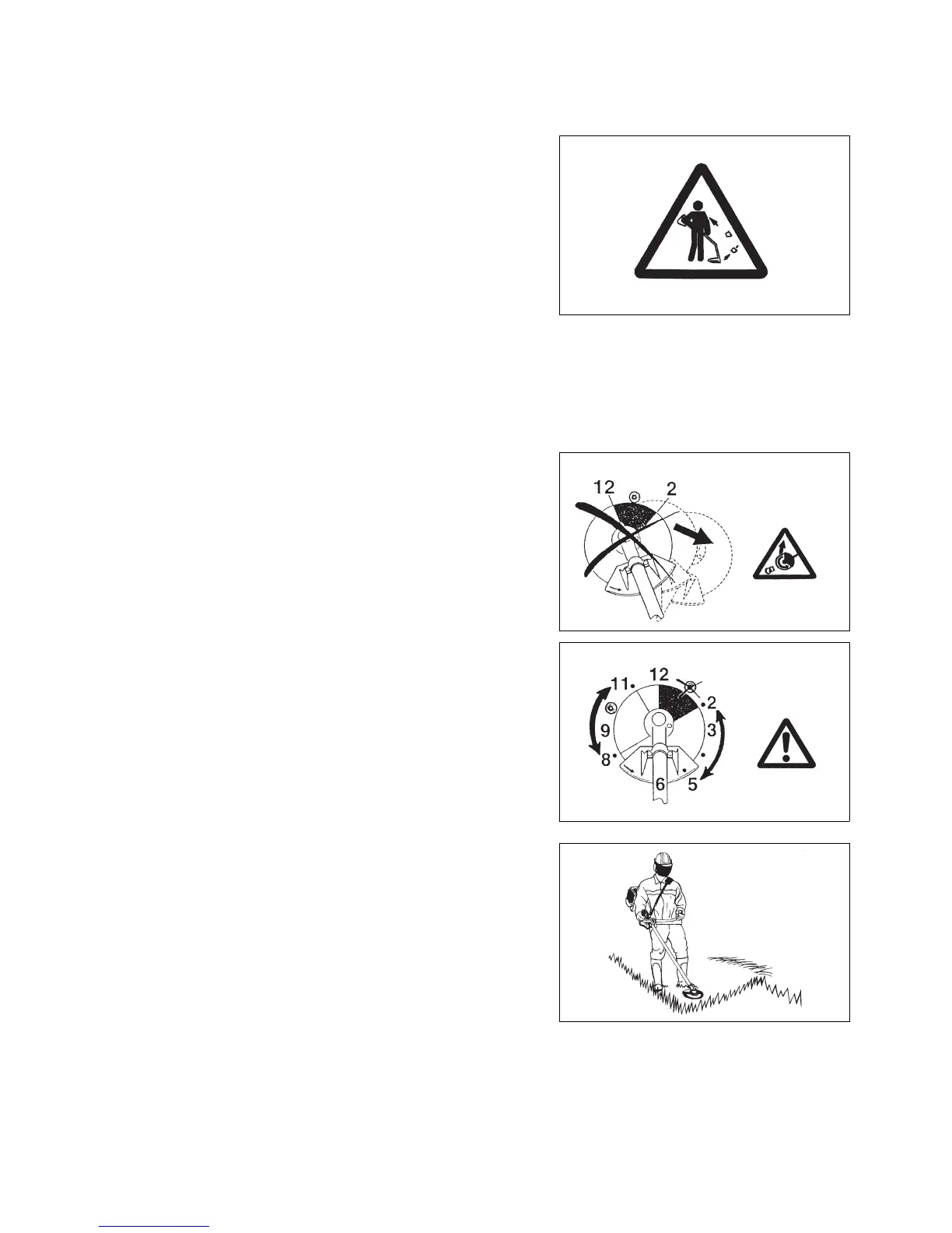 – Yan tırpan bıçağının saat 12 ila saat 2 arasında kalan bölümünü kullanmayın.