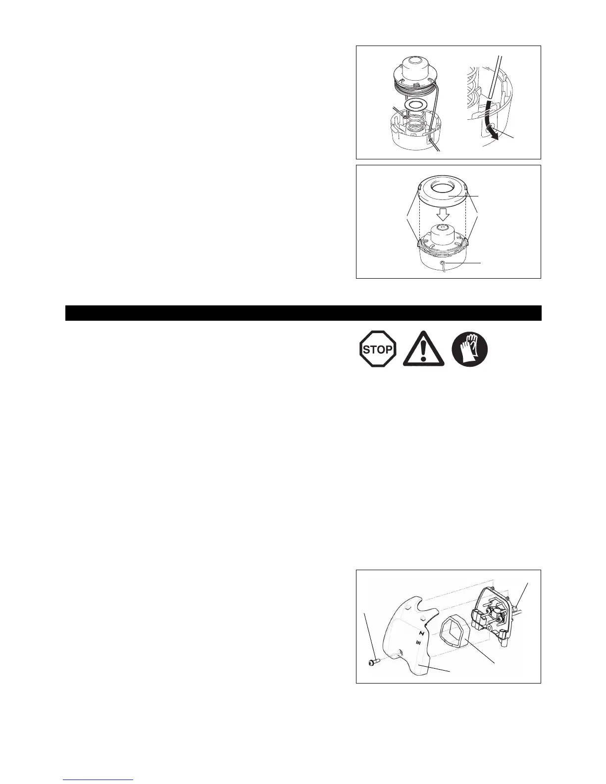 • Kontrollige, kas lõiketera või nailonist lõikepea on terved ja kas need on tugevasti kinnitatud.