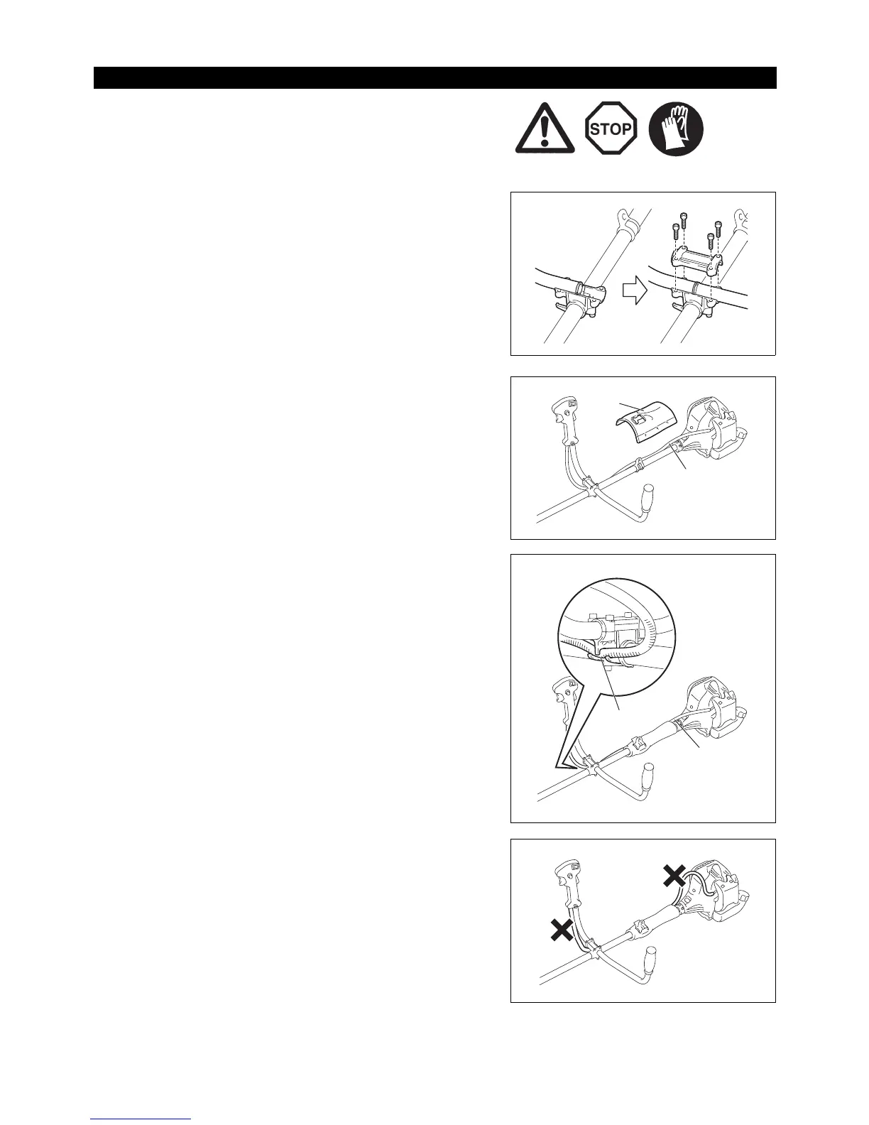– Установите концы рукоятки в паз на держателе и закрепите хомутом.
