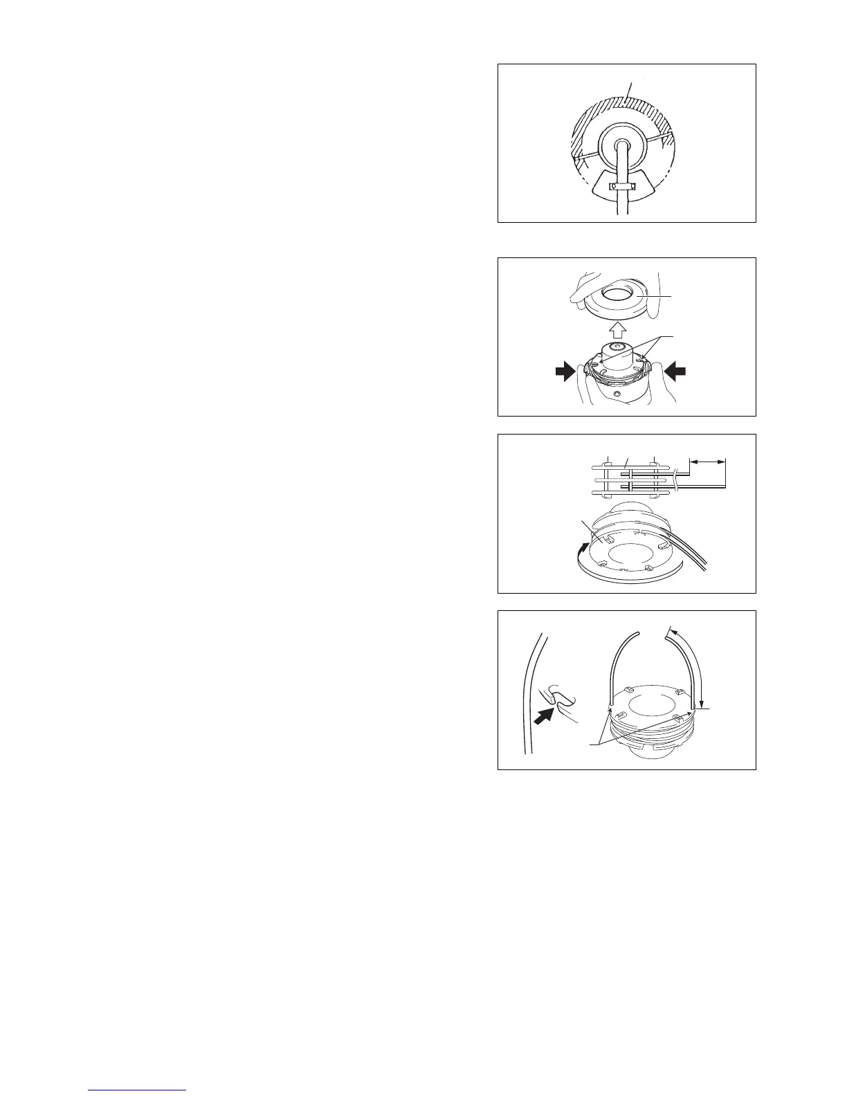 trådändarna stramt upp på spolen i skärhuvudets rotationsriktning