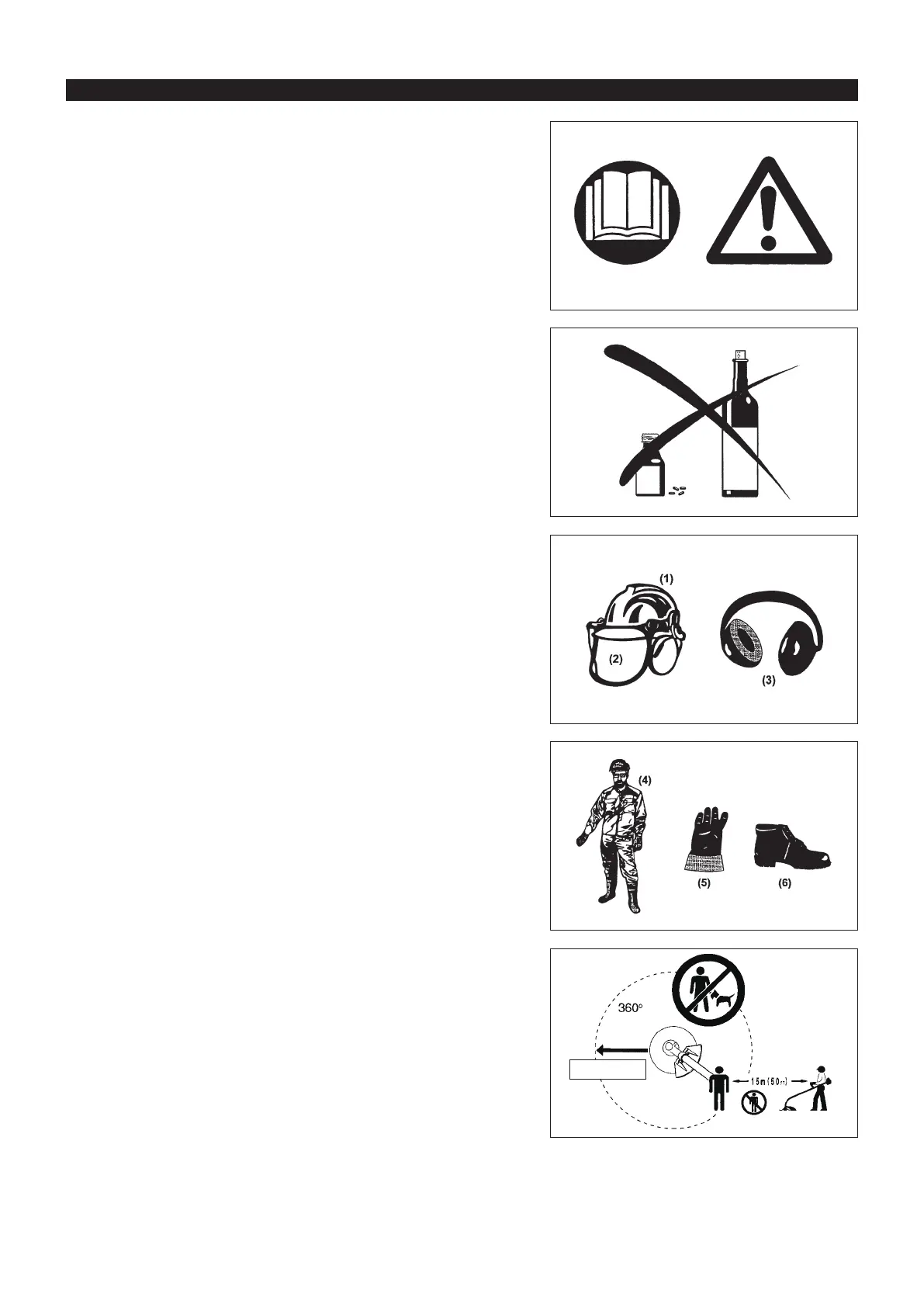 – Al usar la desbrozadora, use siempre calzado resistente (6) con suela