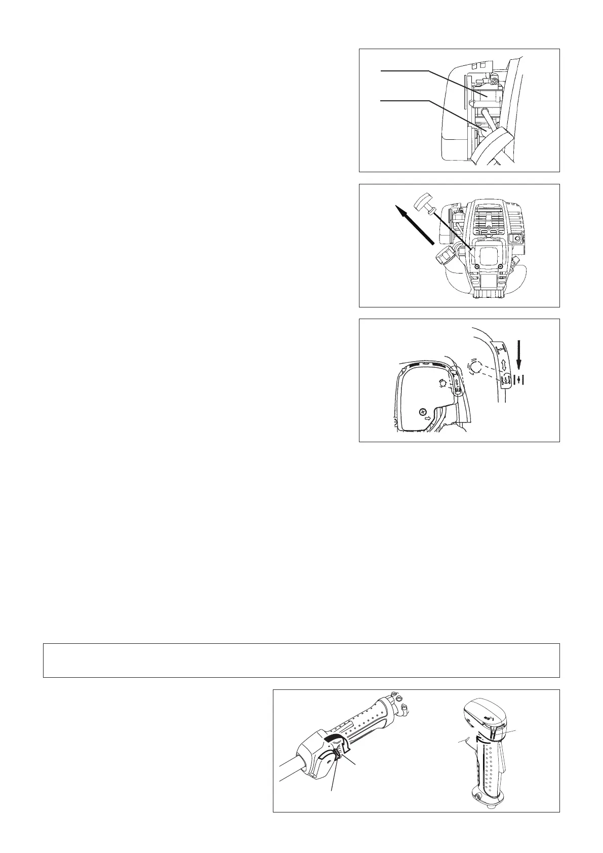 – En caso de una entrada excesiva de combustible, retire la bujía de encendido y jale el mango del arrancador lentamente para eliminar